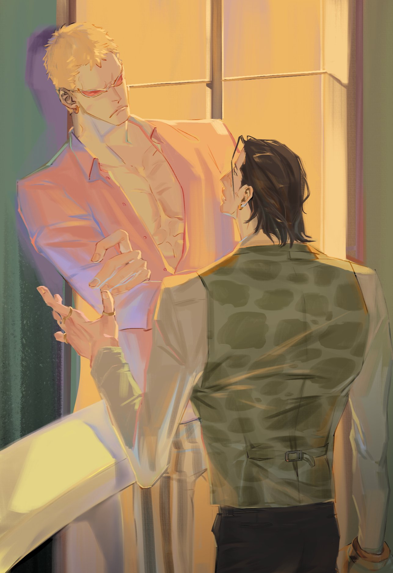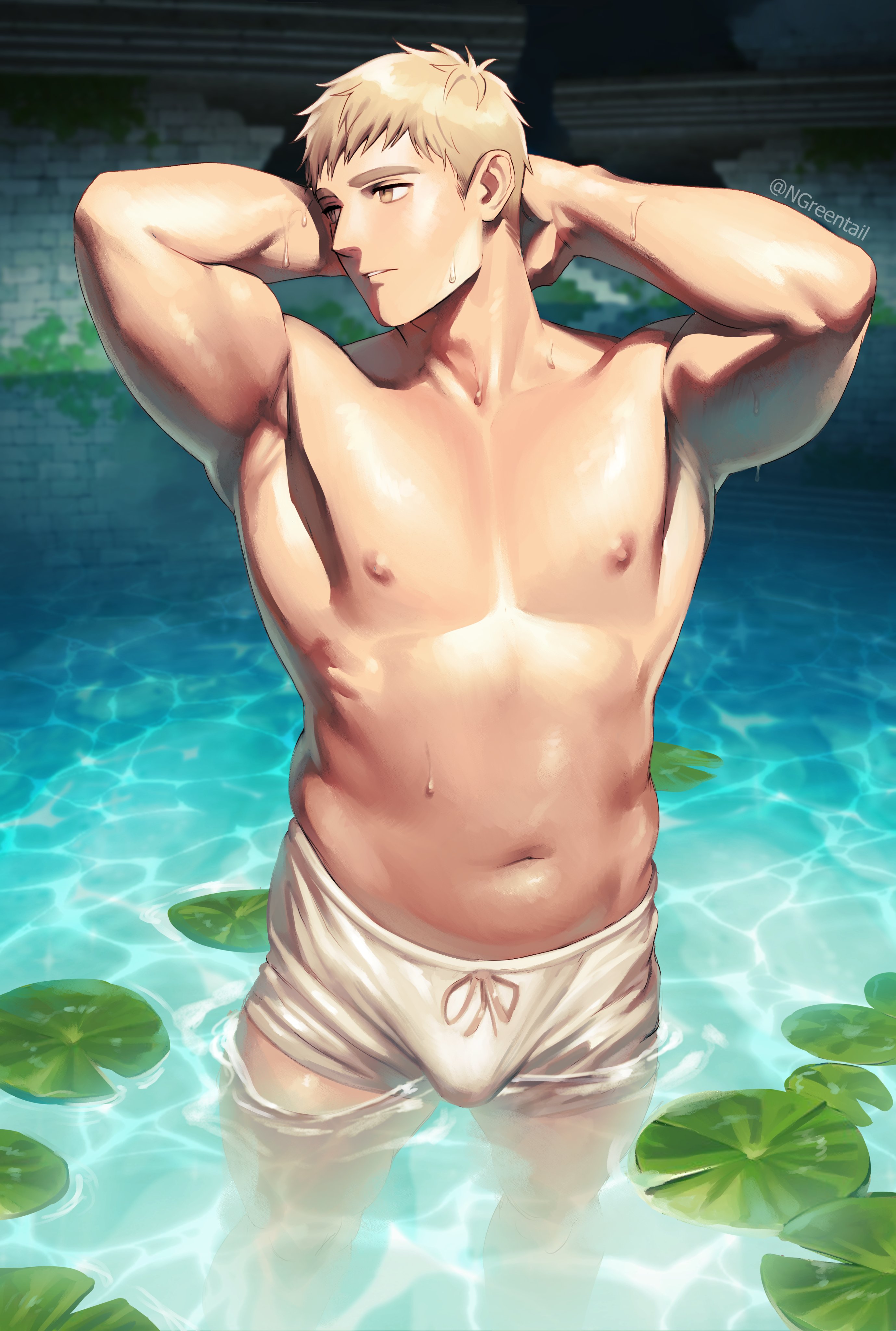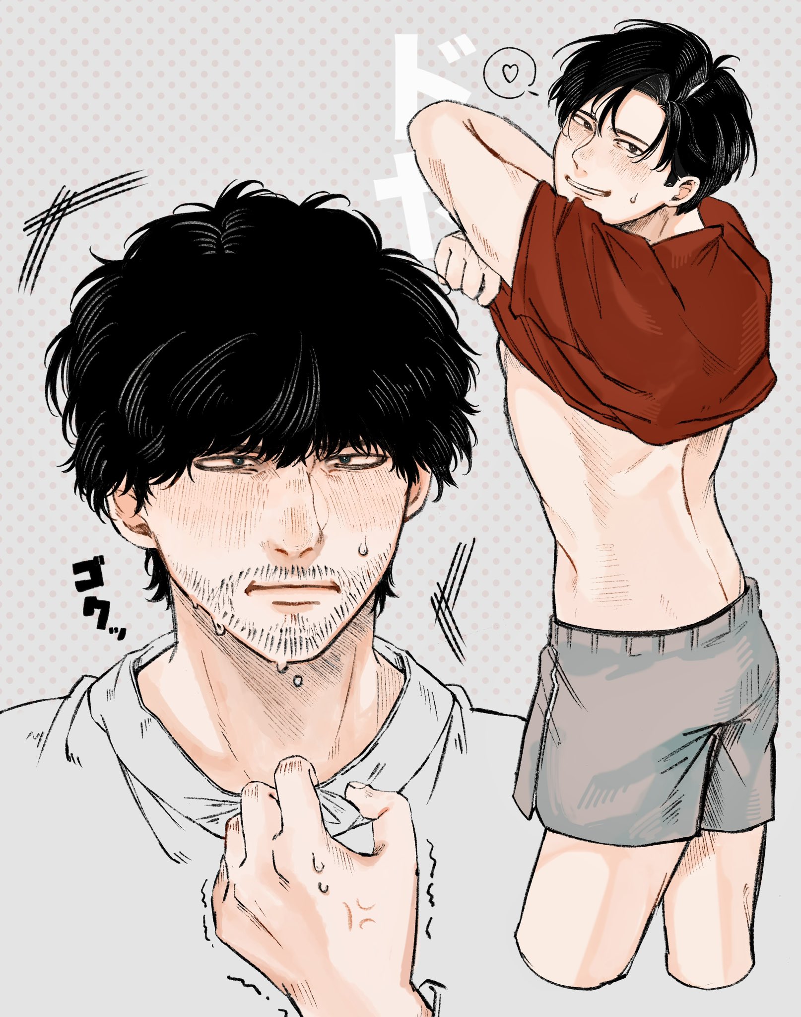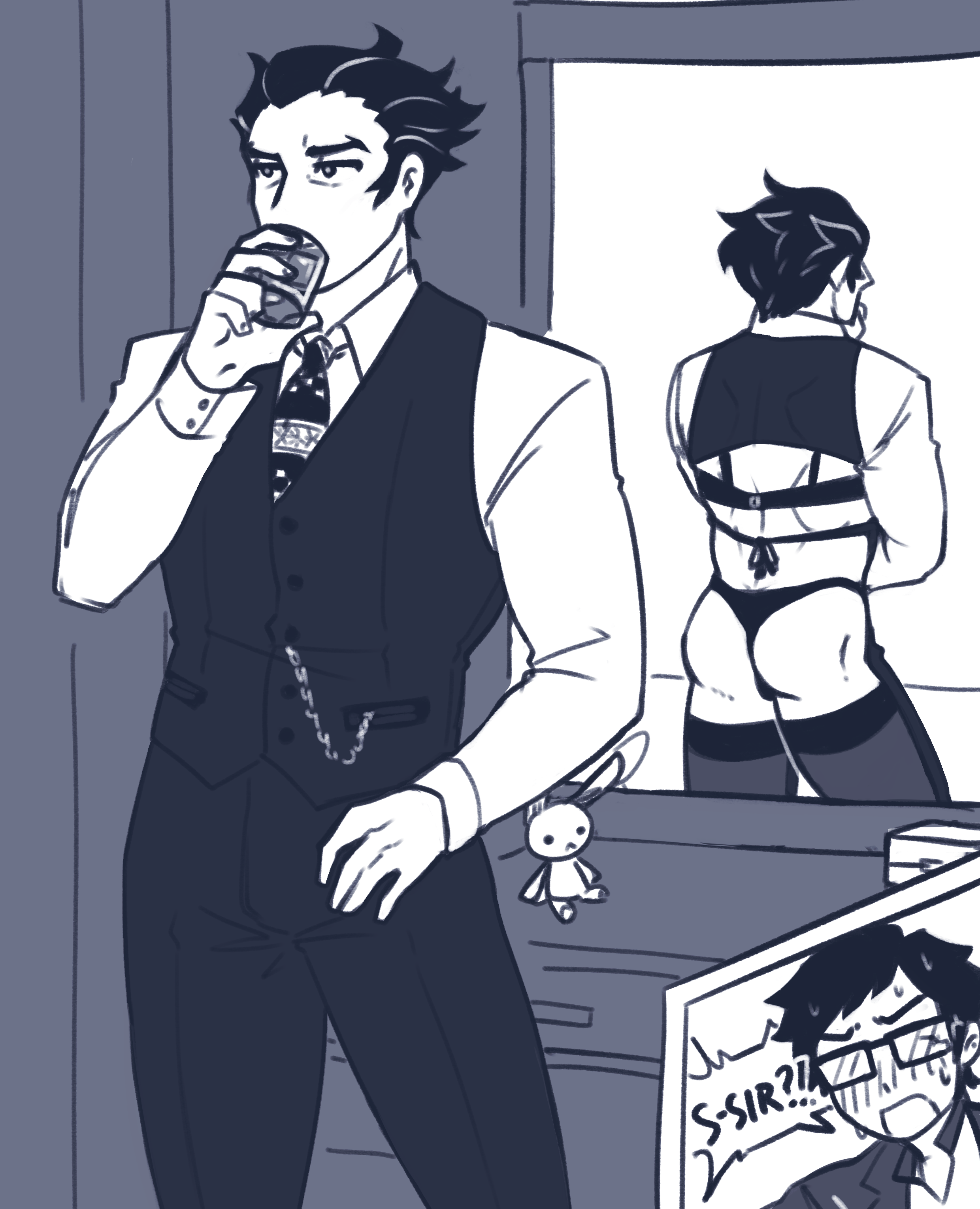 >>283138558he has a beer belly. I know that he has a bigger muscular build and he does work out, I get what you mean but the point from the artist note is that he is embarassed by his increasing dad bob and I agree to that is cute.
