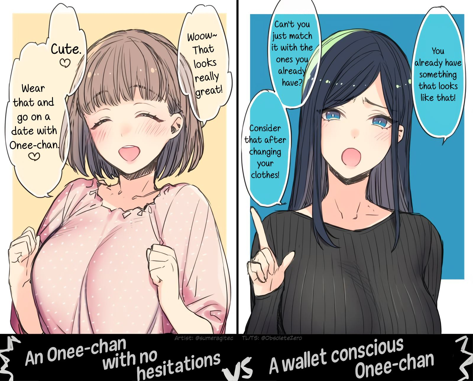 >>283131257>Left is a regular woman, remaining with you and giving you affection only as long as you spoil her>Right is proactive and caringRight, duh. I refuse to be a tool.
