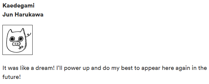 I saved all of Jun's art available on her twitter (https://twitter.com/jun_harukawa) in case she had a meltdown over getting axed and decided to delete everything:https://files.catbox.moe/9ckiyt.zipThe pack contains the doodles she made for Kaedegami, art of her oneshots, original art and a couple of weird oneshots she uploaded on twitter (I didn't number the pages, sorry).