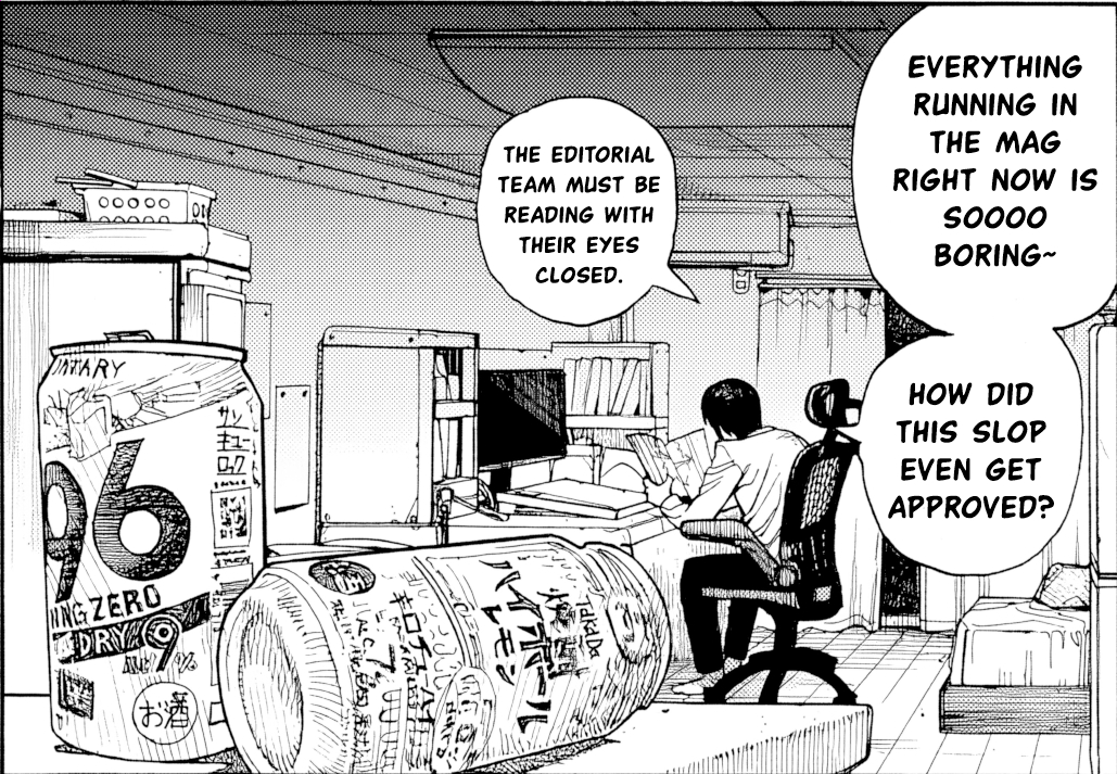 >>283143063As much as I hate what Chainsaw Man has become and how much of a pretentious hack Fujimoto has become he will always have my respect for managing to get this printed in Jump