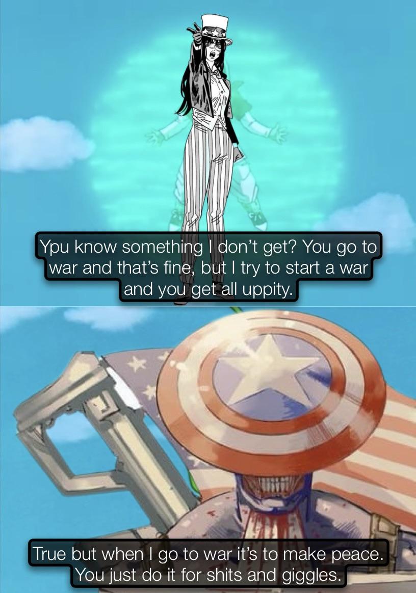 >>283153826>portraying america as the warmongering country that empowers the big bad>said big bad even sang its national anthem>not hate