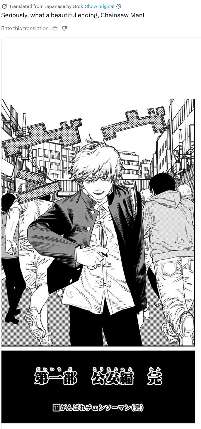 >CSM ends with Apocalypse>everything turns blank>new panel fades in>Denji is sleeping at school>his imouto Power is waking him up>on his notebook we can see the last panel of CSM>closes notebook>leaves classroom>we see Makima, Asa, Kiga and Nayuta being picked up by Death>Reze, the russian exchange student is playing with firecrackers>Denji notices Yoshida stalking him and Power, tells him to fuck off>they arrive home>their dog Pochita jumps on top of them>hours pass>older brother Aki arrives from work>they eat toast