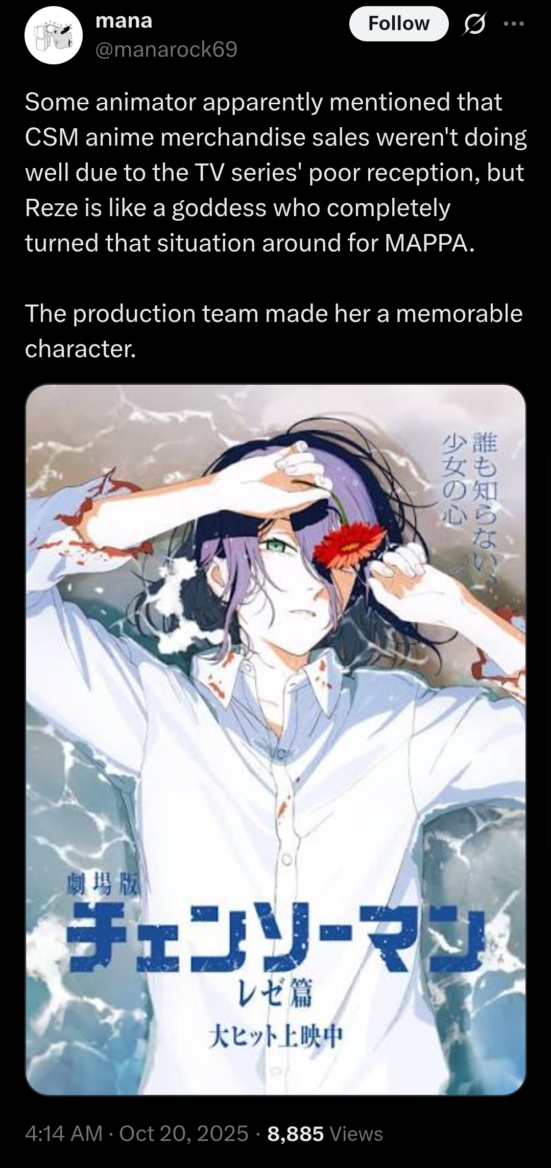 >>283146150>Why?Because people here keep spamming about Chainsaw Man-anything failing and then it doesn't fail and they're shocked (example, the Reze movie)