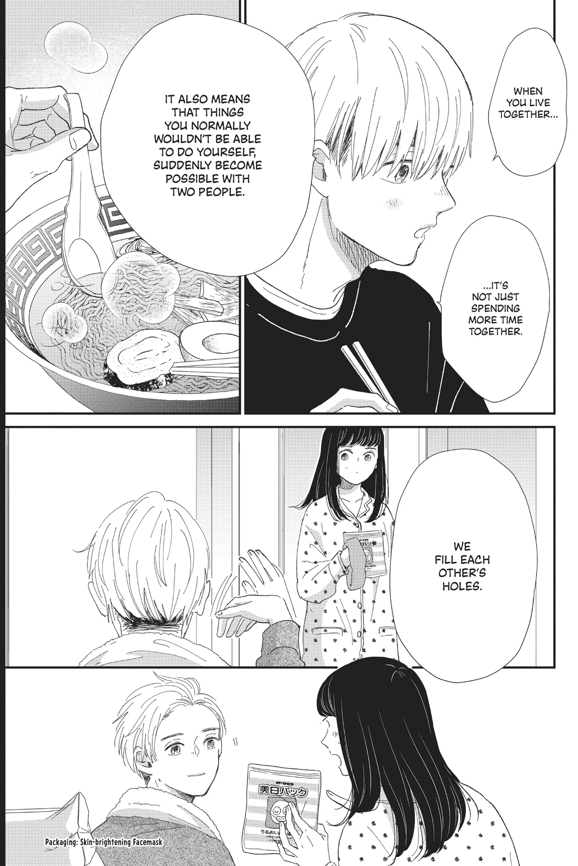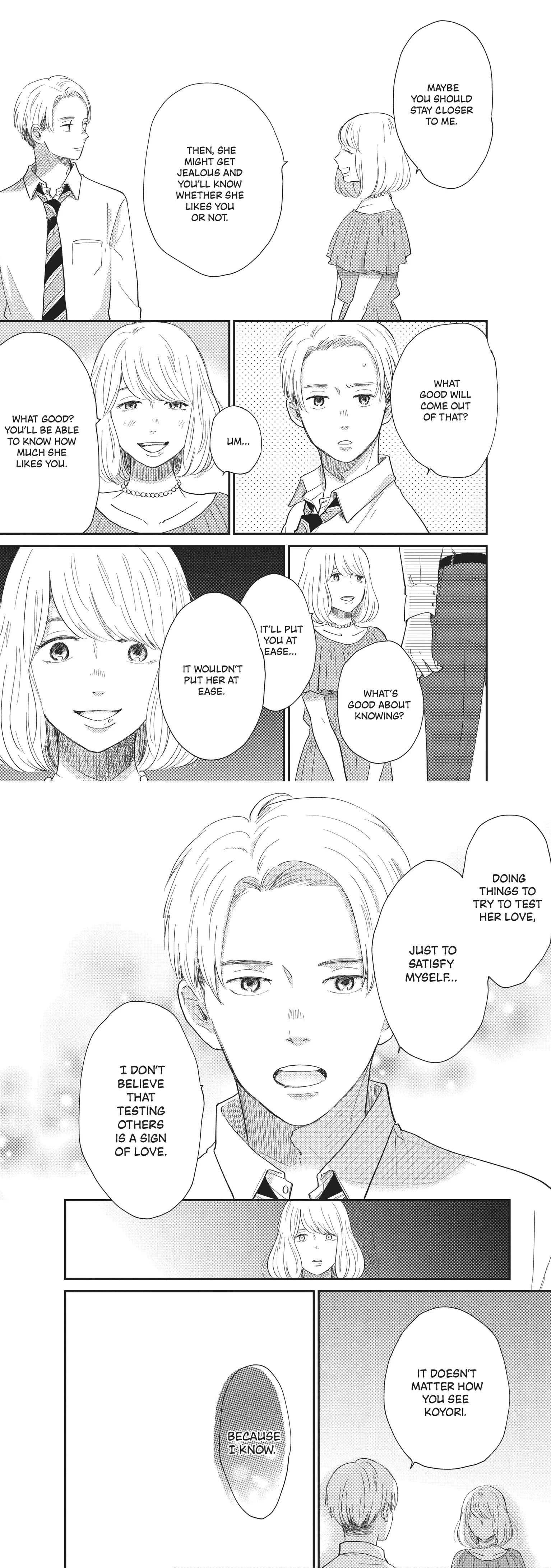 >>283168038>>283168239>Because she had boyfriends? He had girlfriends too?Ops forgot to finish writing, she had boyfriends, he had girlfriends, I found it interesting specifically because it was about 2 childhood friends who finally got together after many relationships, because they were afraid of losing their own and they become a strong couple together, I feel like the story was evenly sided too and there is no long winded drama, the only thing I didn't like was a short needless timeskip toward the end.