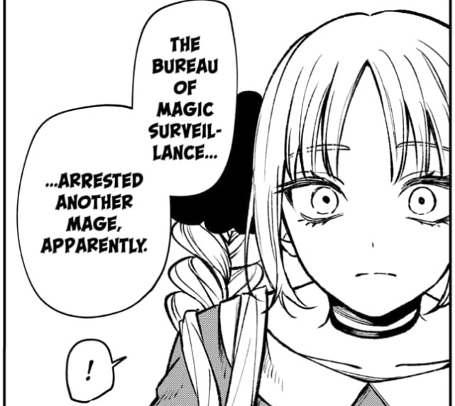 >>283209847That translation is kinda wrong, there's nothing about glasses that can see magic. It's "she caught the attention of the 'magic investigation bureau'".