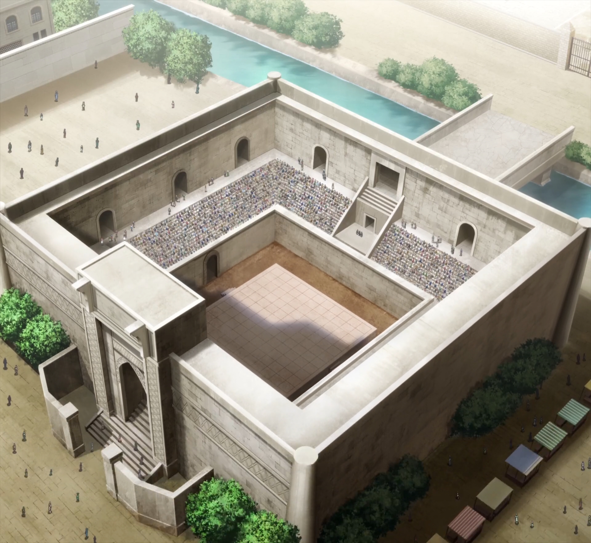 entrances are weird, but it's cooler than another round stadium with a dragon ball paving.