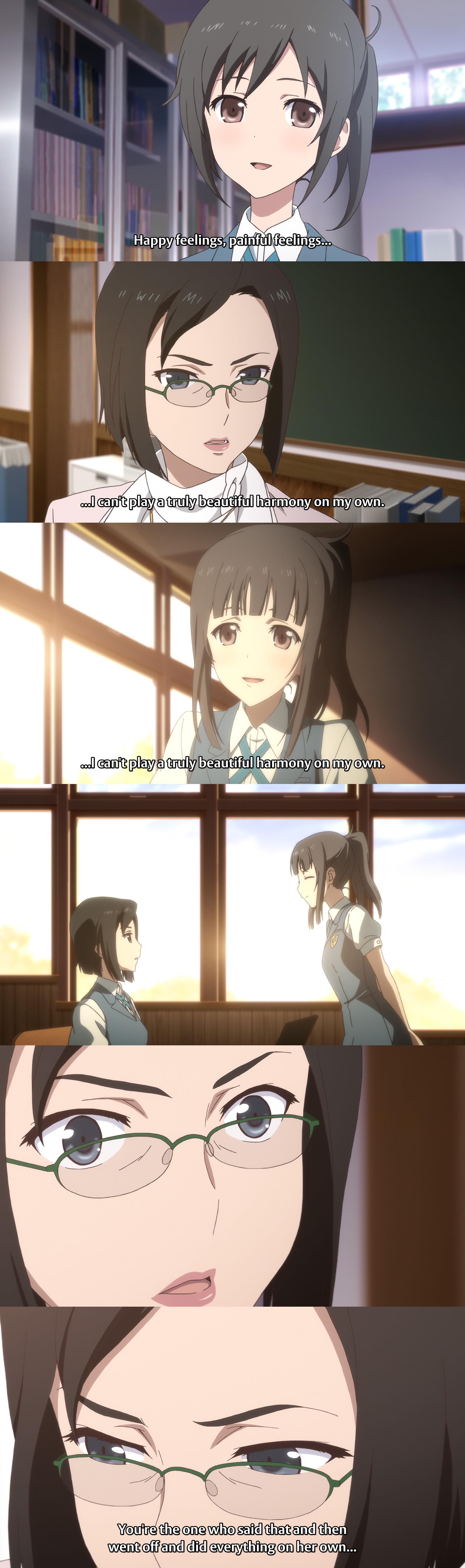 >>283247377The side characters are at the side where they belong after they've served their purpose in the story, still there to provide insight or levity but not actively drag away from the momentum of the plot in later acts. Yusa and Misa had their arc early in the story instead of three quarters of the way in, and the side plot where Nao films Yusa's next music video is more than enough to remind us that she still exists.
