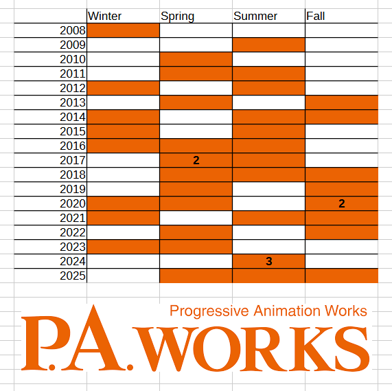 I haven't watched a lot of P.A. Works shows, but they did a good job with the Mikadono adaptation so they're alright in my bookshame the show flopped