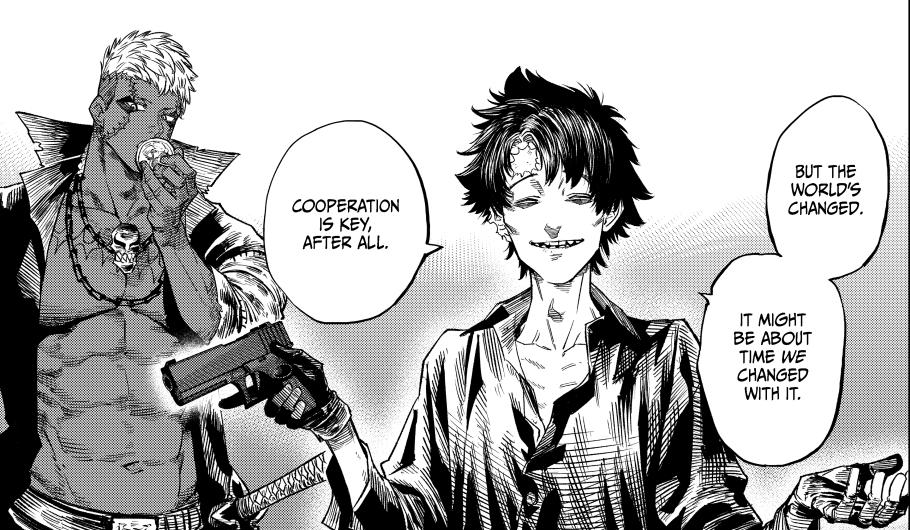 >>283239800>>283239877The Lawless's most obvious development is to become the setting's equivalent to Dai Shocker, where all the stragglers and rejects of the other Natural Enemies go to band together.
