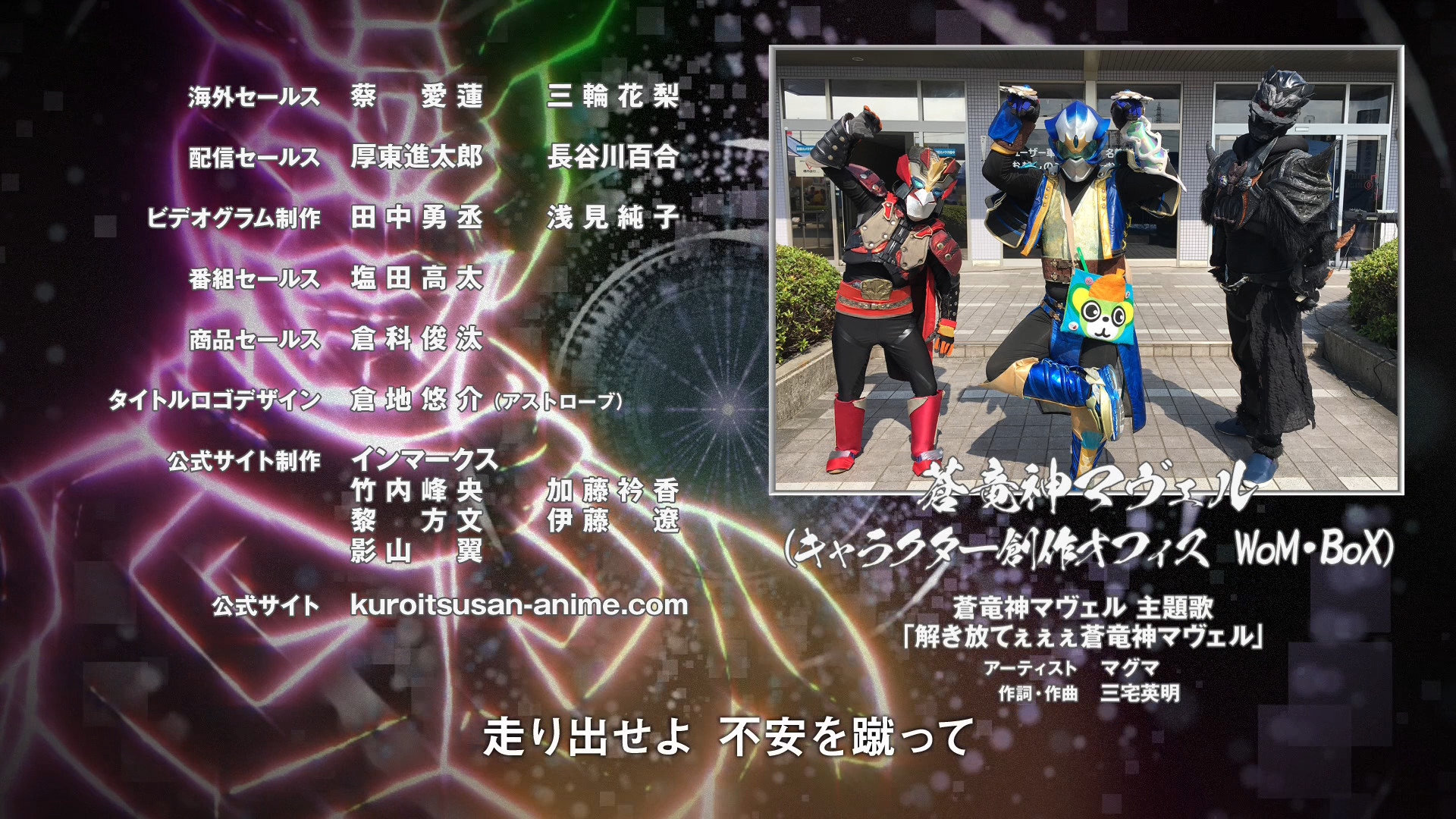Here's something. Kaijin Kaihatsu-bu Kuroitsu-san's anime added a bunch of segments featuring various local hero tokusatsu productions, and in every ED they'd credit them all with a note that said "These heroes aren't fiction! They really exist!" Also despite everything they somehow had two EDs to use.https://www.youtube.com/watch?v=IYxdHQ2A2kshttps://www.youtube.com/watch?v=x4y-XRcsjWE