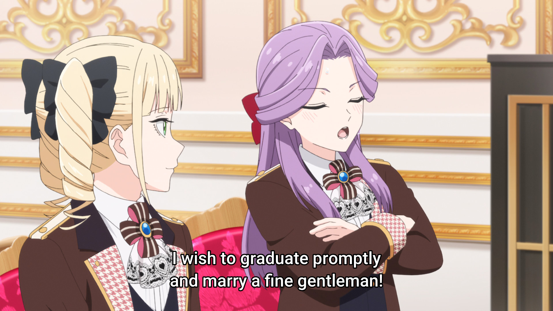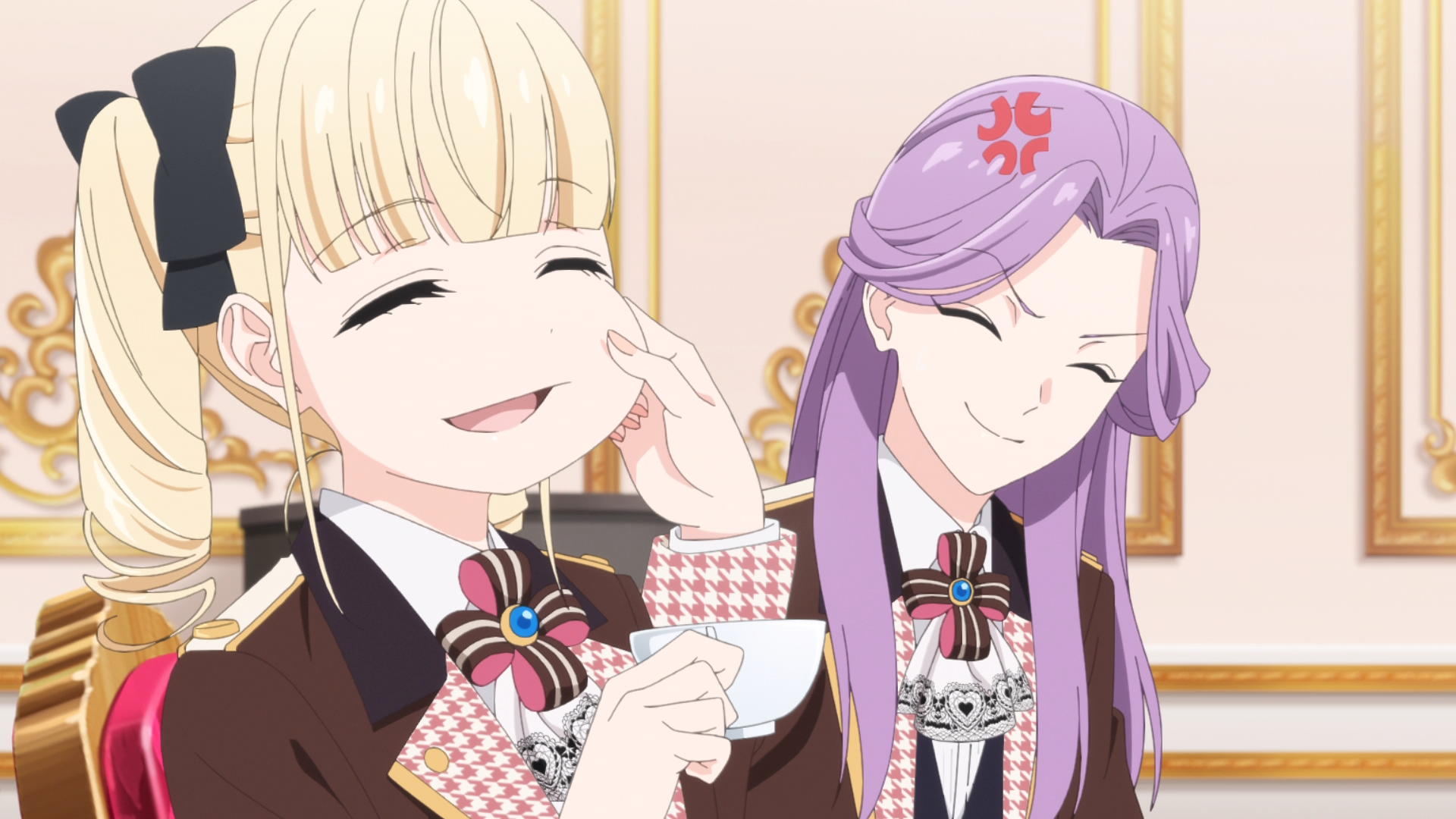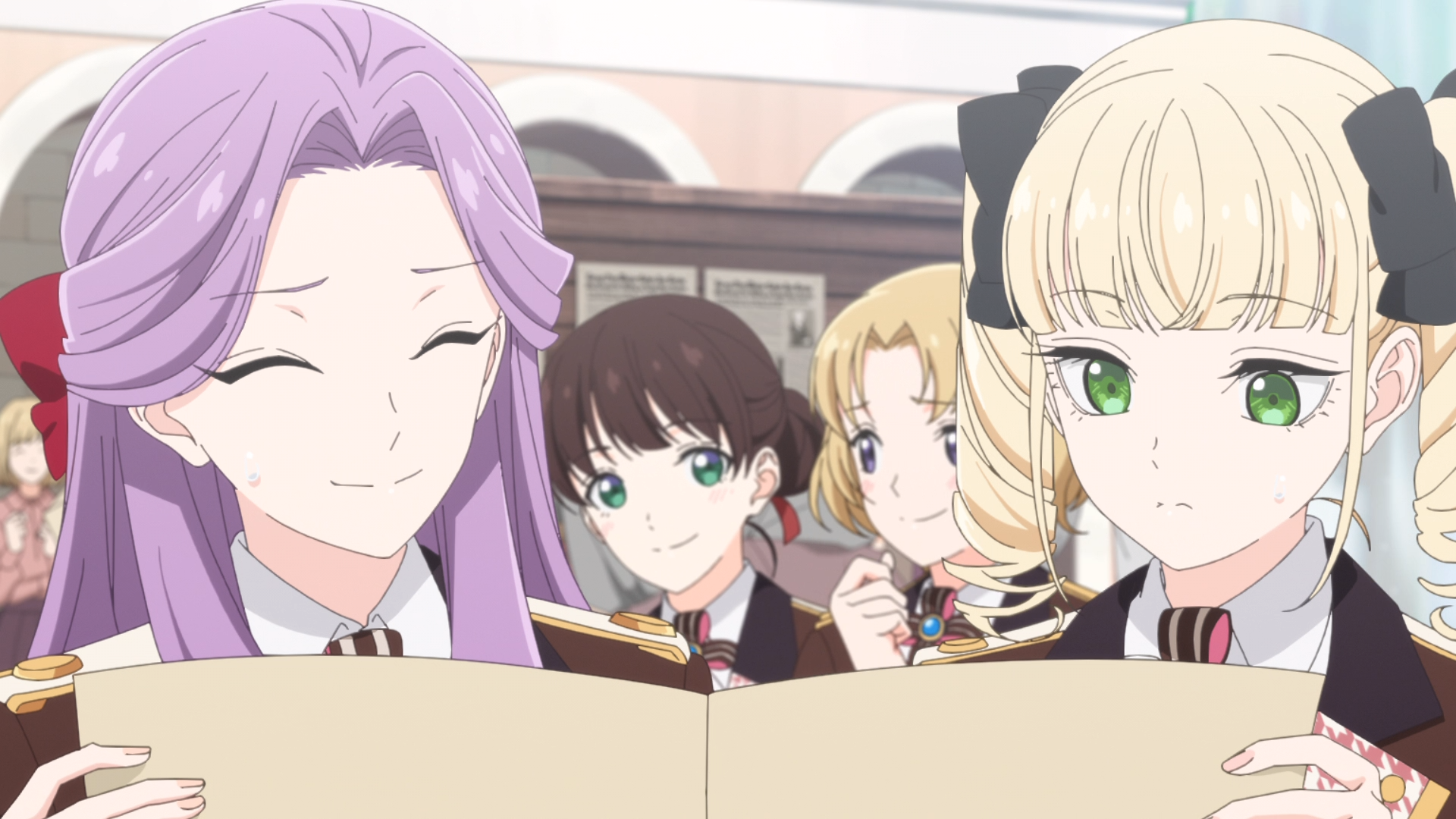 Oh hey, purple girl was 3rd place in the school rankings in episode 1. That's pretty great considering the two above her.