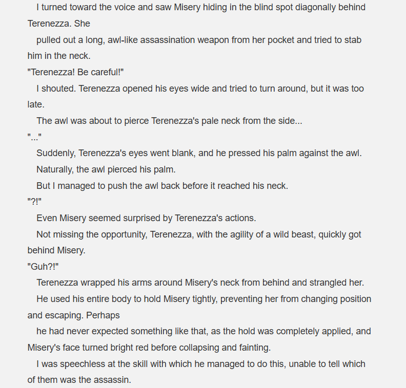 >>283283381At least she gets done>Scarlet >speed of light punches that sends an old man flying>perfectly fine>Terenezza >drink that poison >dead next frame