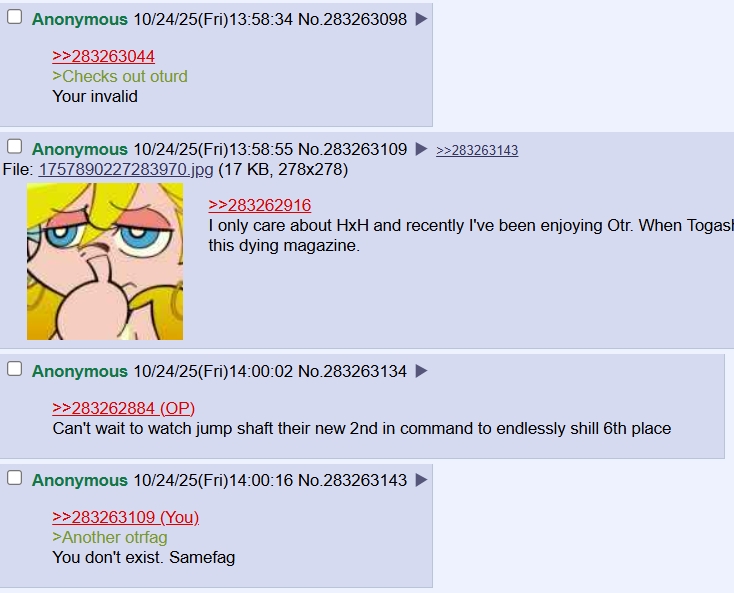 >>283263109>Another otrfagYou don't exist. Samefag