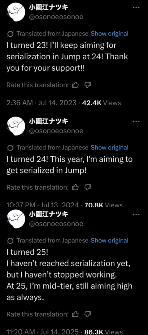 >>283278915https://www.mangaupdates.com/author/4p5toaj/odoriba-yuu>>Last one-shot: 2021>>283278919It seems he's very calculating, maybe he doesn't want to be one hit wonder with the One-shot being mega popular but the series bombed.