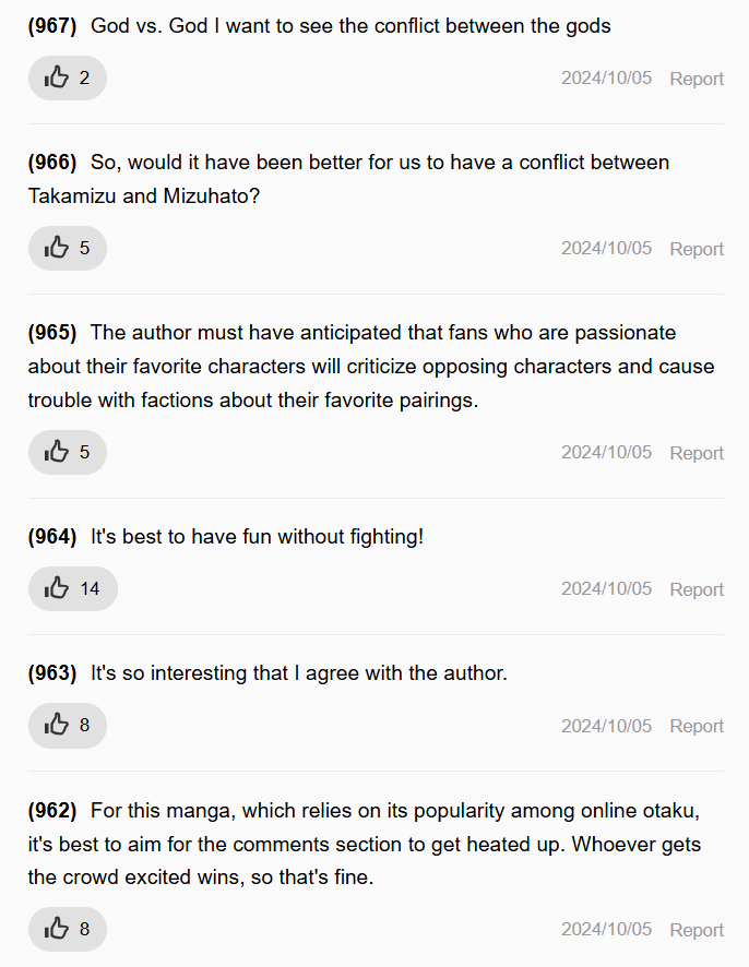 >>283263098>>283263143Mald, bitch. Despite its flaws, Otr is one of the most interesting series in the magazine now. There's also PPP, but it's already gone. Other than that we have: One Piss, People Fight, People Fight 2 Ninja Edition, Romcoms with jokes that only nips can understand, Le Random and Unfunny Parodies, Samurai, a baseball manga worse than Smoky B.B., a sequel nobody asked for, etc...Ichi the Witch is cool, but the last few chapters have been a drag, the same with Kagurabachi, not to mention the author is already dying. And Kiyoshi is too childish and predictable, it's boring. WSJ is completely washed to me.