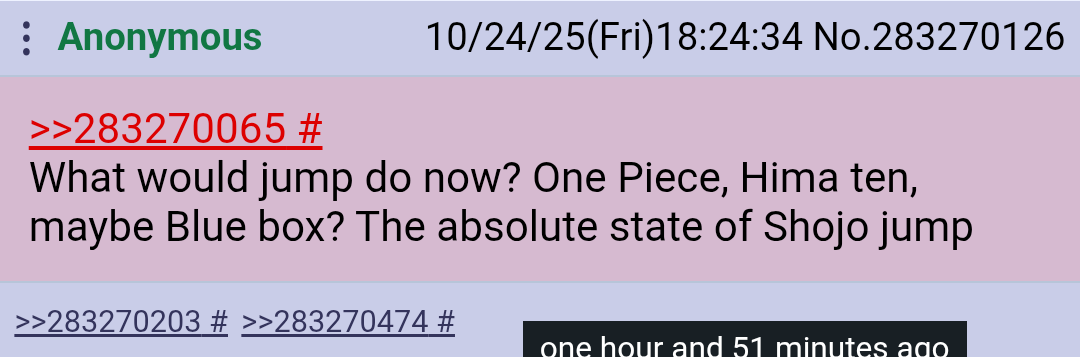 >>283262916not since Jjk and mha ended.