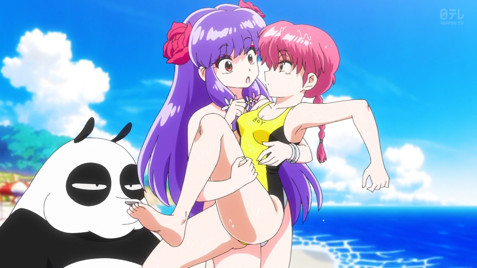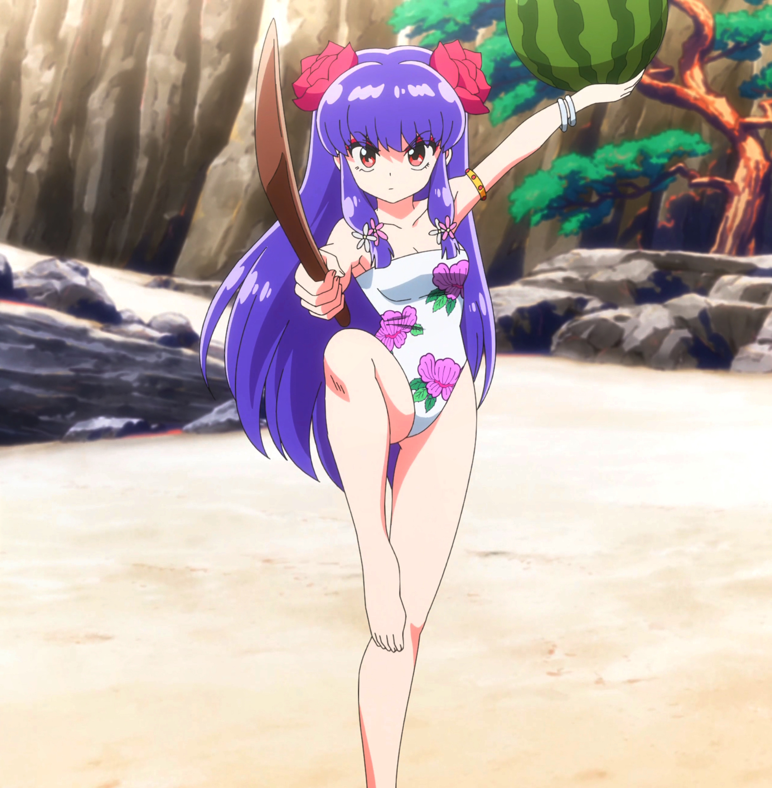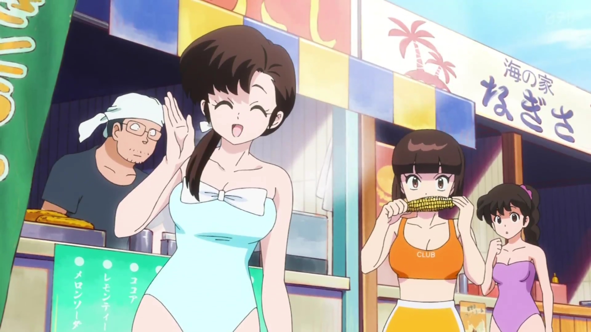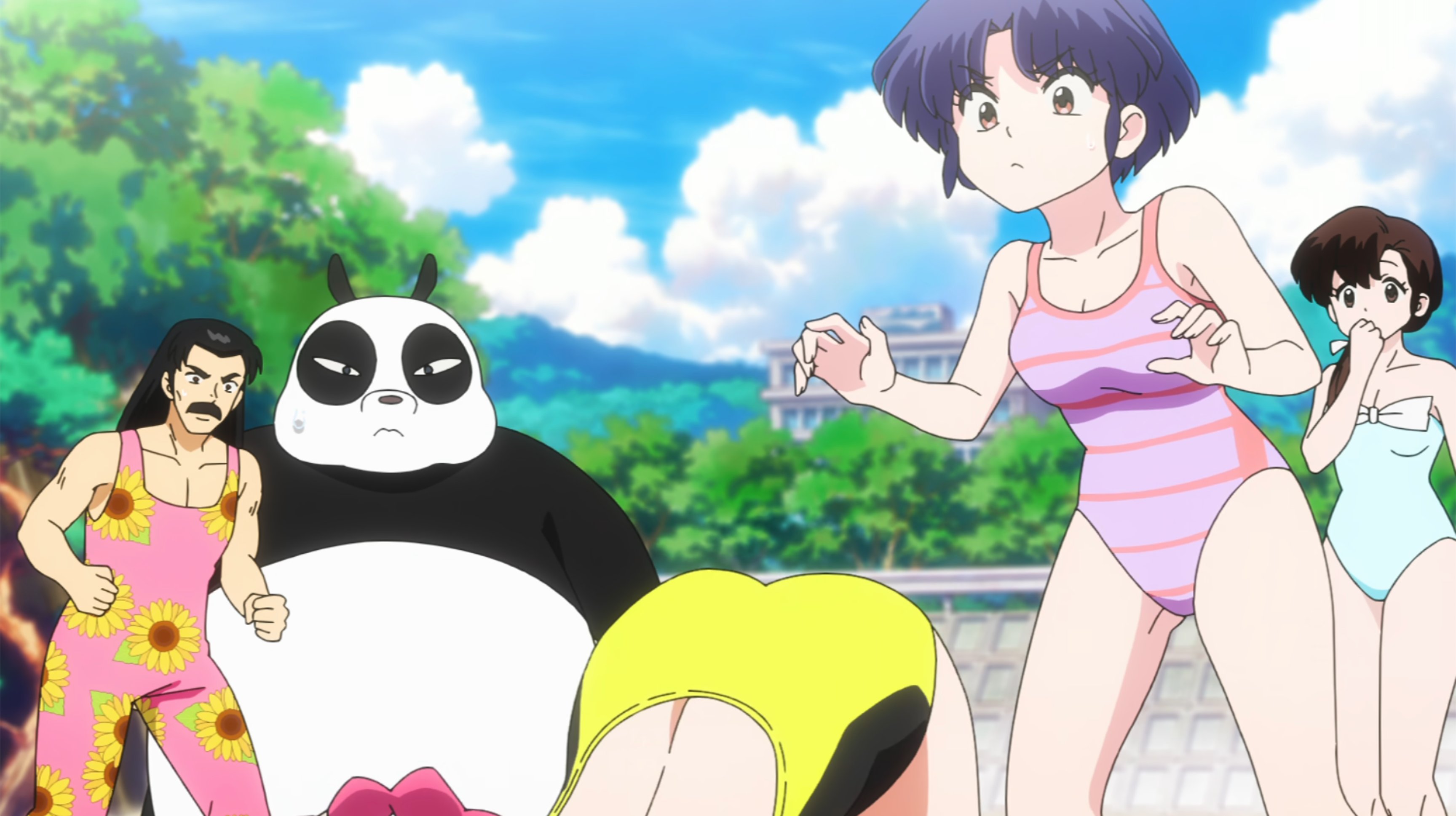 The old anime had multiple beach episodes but this one changed the setting so Ranma fought ice monsters created by Cologne on a ski resort instead of a Shark at the beach, I actually like the ice creatures better and the fact that unlike in the manga Ranma actually punched Cologne directly multiple times in the 1989 anime