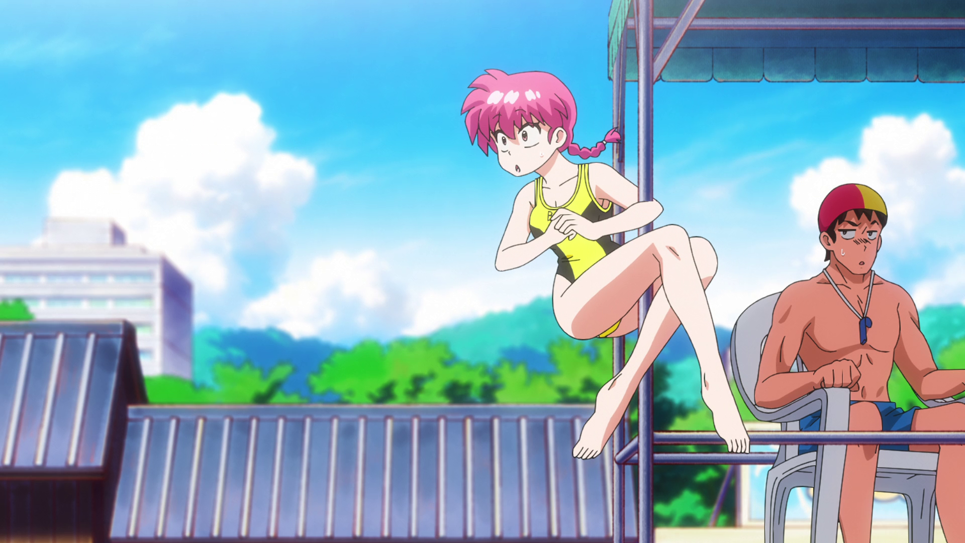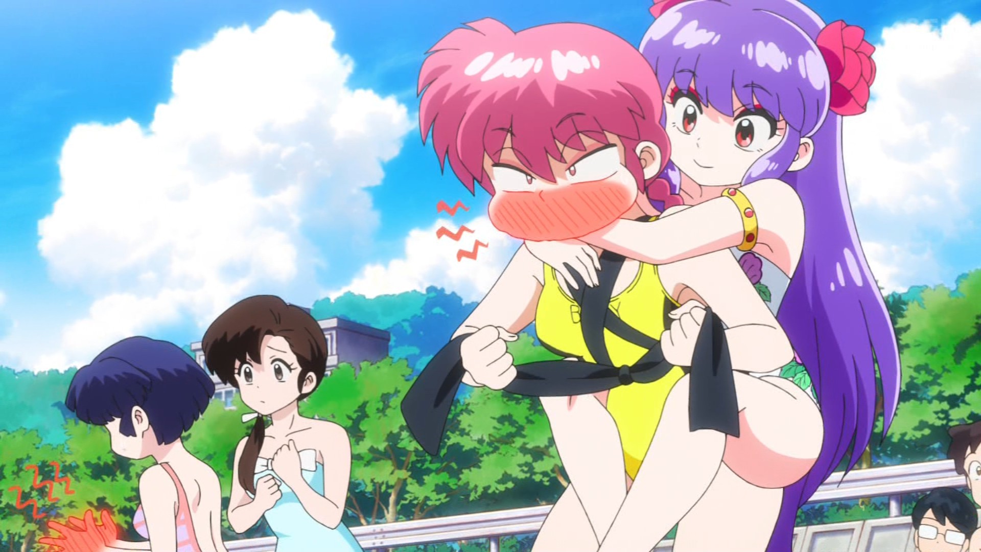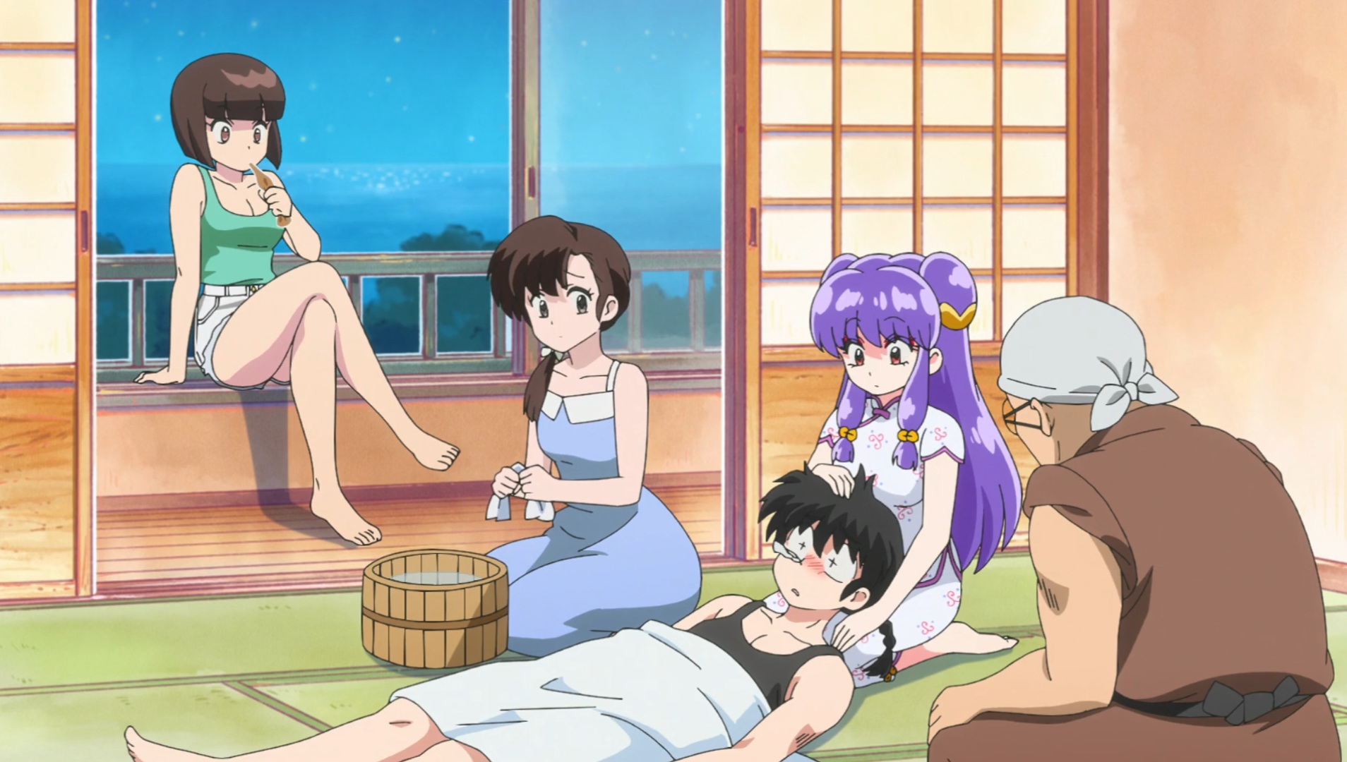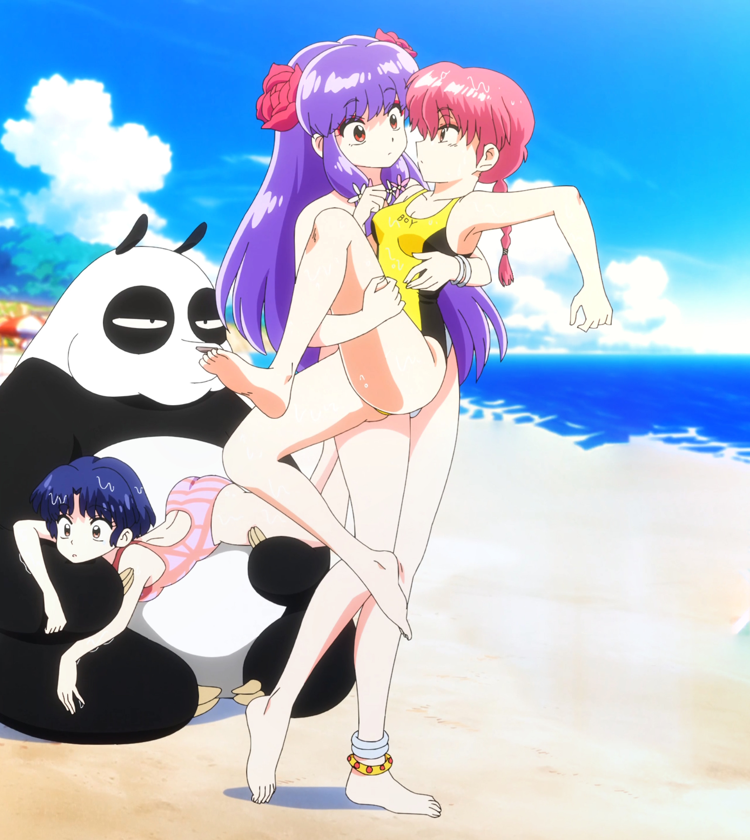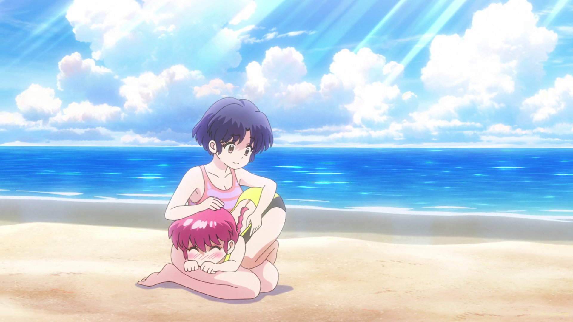 The old anime had multiple beach episodes but this one changed the setting so Ranma fought ice monsters created by Cologne on a ski resort instead of a Shark at the beach, I actually like the ice creatures better and the fact that unlike in the manga Ranma actually punched Cologne directly multiple times in the 1989 anime