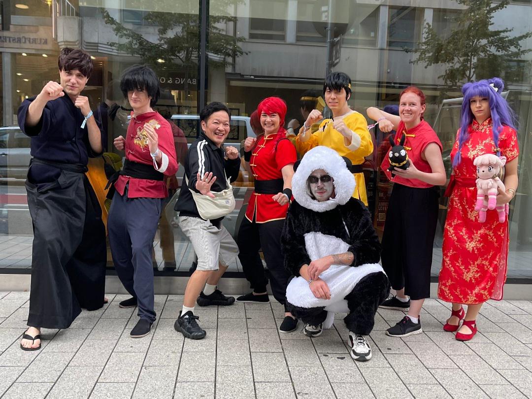 Ranma voice actor photos with Ranma cosplayers in the west