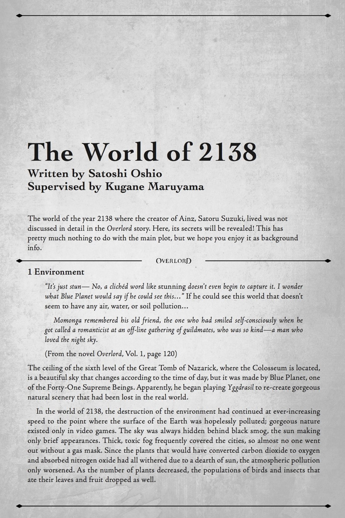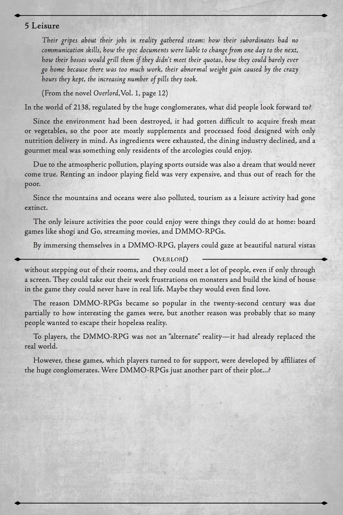 >>283308736It's in keeping with the rest. By far the strongest aspect of Overlord is the worldbuilding, which makes absolute sense if the author was a forever DM.