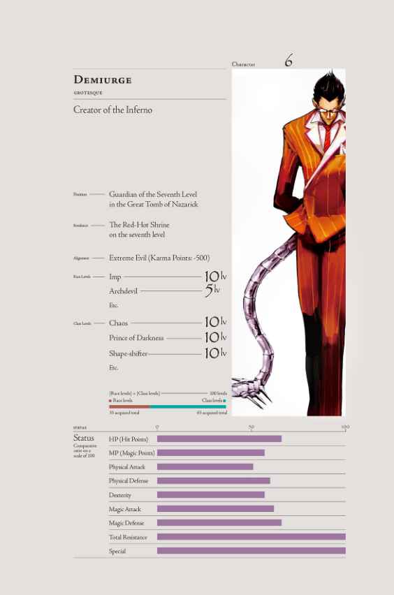 >>283315336I think this is just a limitation of Yggdrasil.Demiurge's notes kinda point in this direction.Demiurge is "supposed" do do a three forms sort of final boss transformation, but this ability doesn't actually exist, so he summons the demon lords (which are weaker than him) and turns invisible, then hides instead. He has the partial transformations that help complete the illusion, but at a baseline, a ton of Demiurge's build is just creative solutions around the fact that he can't actually transform. Transformation as a whole seems to be something you just can't really do in Yggdrasil. Changelings have this as their entire feature, and allegedly Sebas can do it, but the fact that Demiurge was built around such a limitation in such a strange way suggests that just casting polymorph on yourself or whatever isn't really an option. Otherwise, Demiurge would be doing that, not the weird, barely functional, anti-synergy build he has, that makes him the weakest level 100 in Nazerick, and within the strike zone of a couple of the Pleides, who cap out at level 70 iirc, and I think that's only Yuri Alpha, the rest are 60 or lower. You wouldn't do that if you could just build a wizard that polymorphs himself.