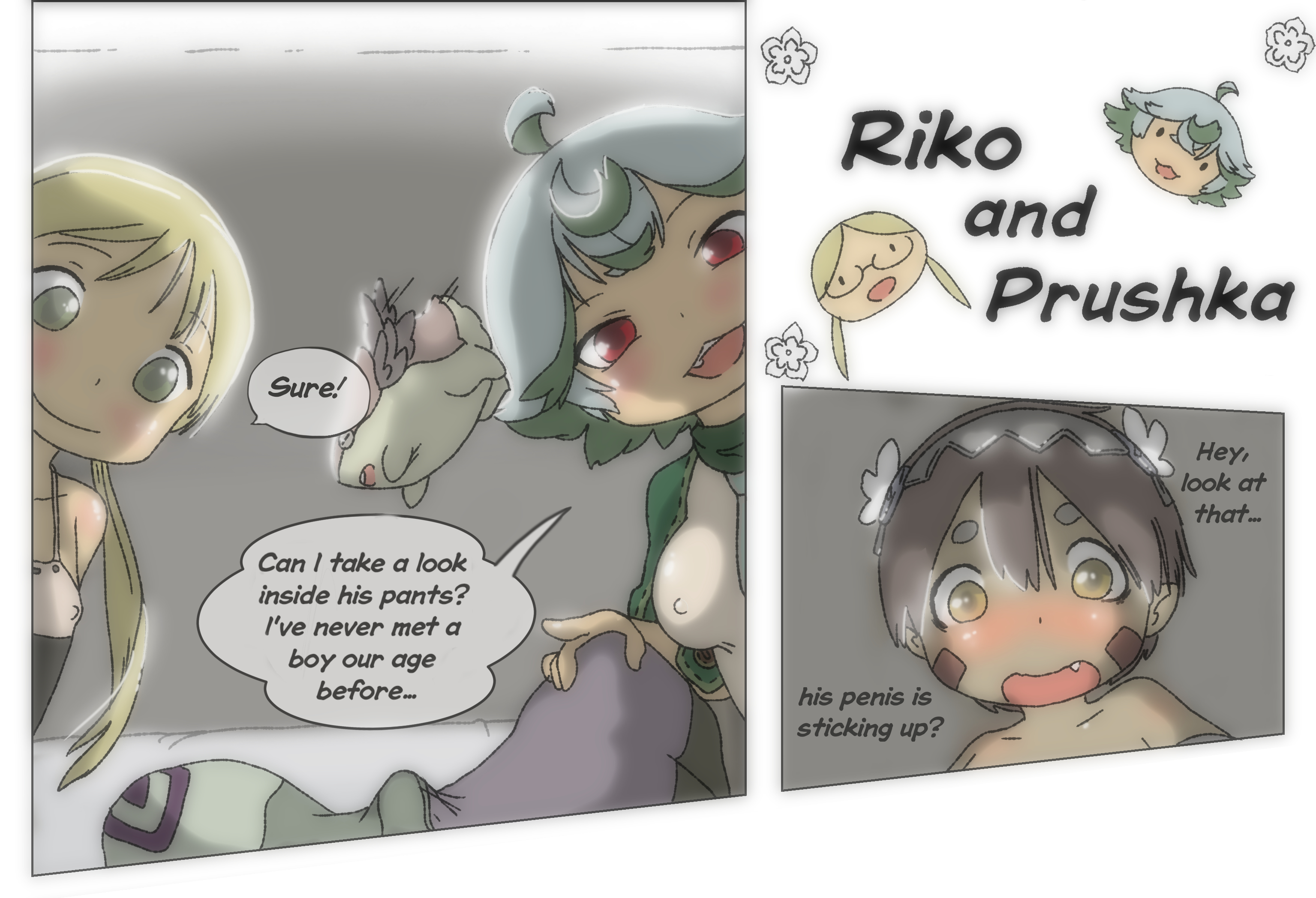 >>283341518This is cap. The female characters are sexualized way more frequently than the males.>Riko is frequently naked or underdressed>The bath scene with Riko and Reg heavily focusing on Riko's naked body>Prushka bath scene>Naked Vueko>Vueko having steamy hot lesbian sex with her girlfriend>Riko loudly pooping with violently explosive force twice>The alley scene>Prushka getting molested into a refine whistle, making the villager nut in the process>Riko making ahegao faces as she eats an extremely spicy hot testicle.>Tespaste, Srajo, and Nishagora's designs>Sherumi and Menae having "very sensitive butts"The shotas have not getting anywhere close to this many lewd scenes.