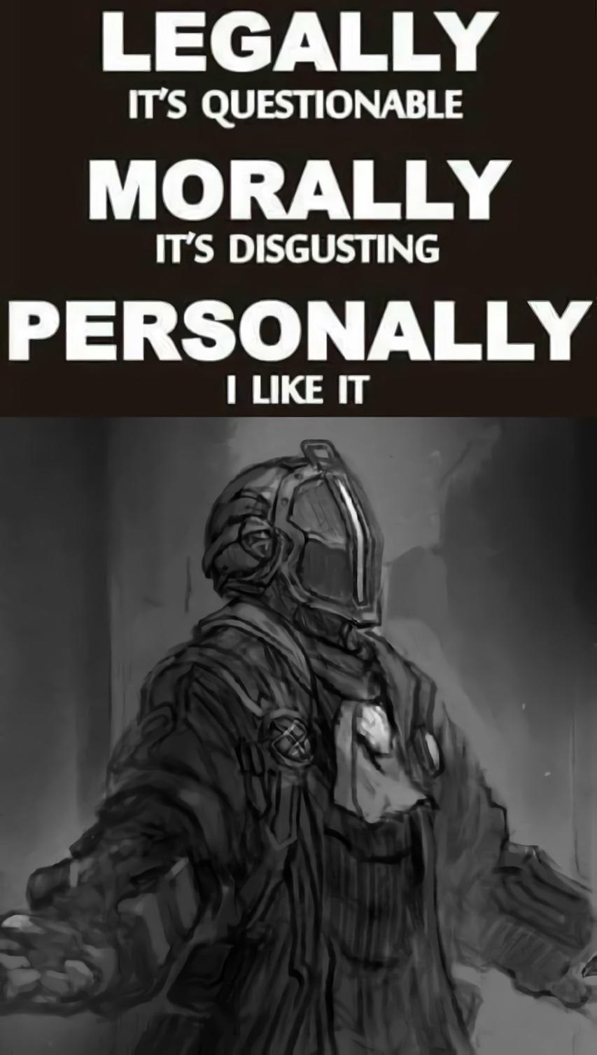 >>283309717>The cartridge thing was like when some guy at the D&D table or in a forum discussing a series' worldbuilding asks some INSANE shit like, "what if I surgically ablated the orphans down to the bare-minimum organs needed to stay alive, could I use them as curse decoys so my character doesn't get affected when backtracking?" except the DM or the forum moderator, instead of dismissing the idea as demented, actually fucking runs with it. Bondrewd is finding exploits. He's an epic pro gamer.lol nice