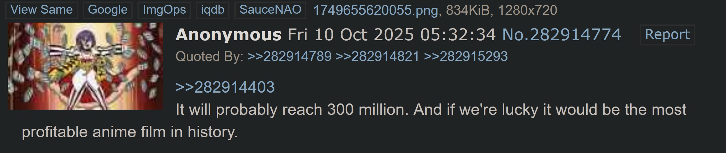 Not trying to be a doomtranny but the CSM movie is obviously less successful than either of the Demon Slayer movies. Which makes sense because KnY has way more broader appeal in terms of demographics. See >>283311927