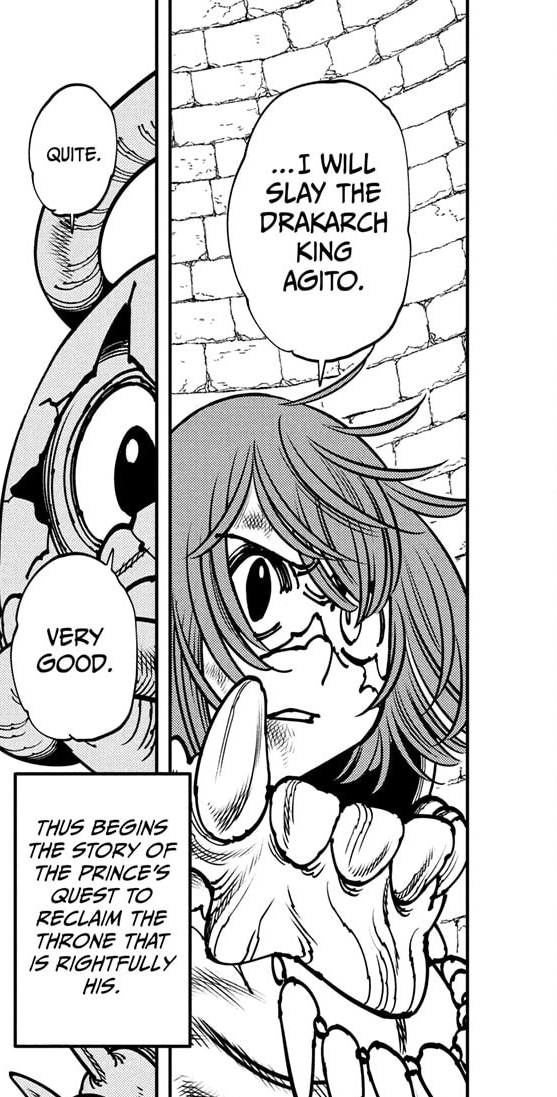 Goron did right where Otr, KDG and Ichi failed. To set up some basic intrigue since chapter one. Now I want to see what will the prince look when he hatches. I will read your manga.
