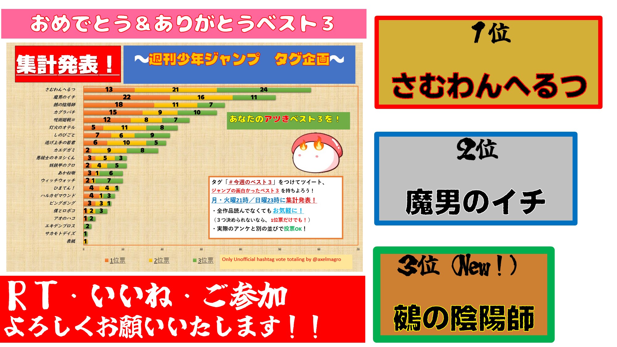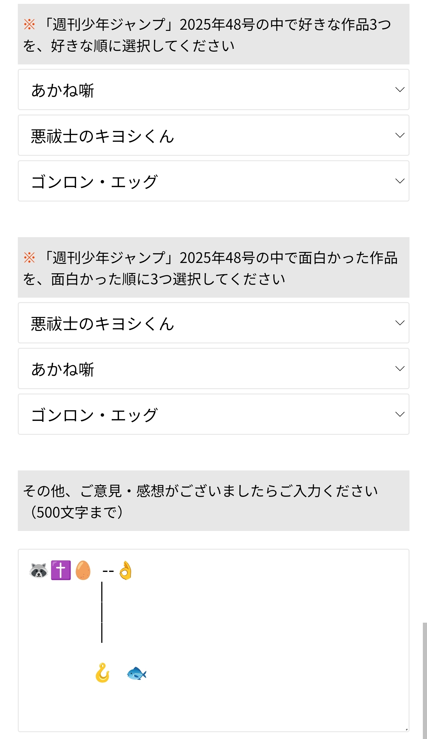 I read all the Jump works The survey included "Nue no Onmyoji," "Samuwan Herutsu," and "Gonron Egg" The new serialization was interesting!