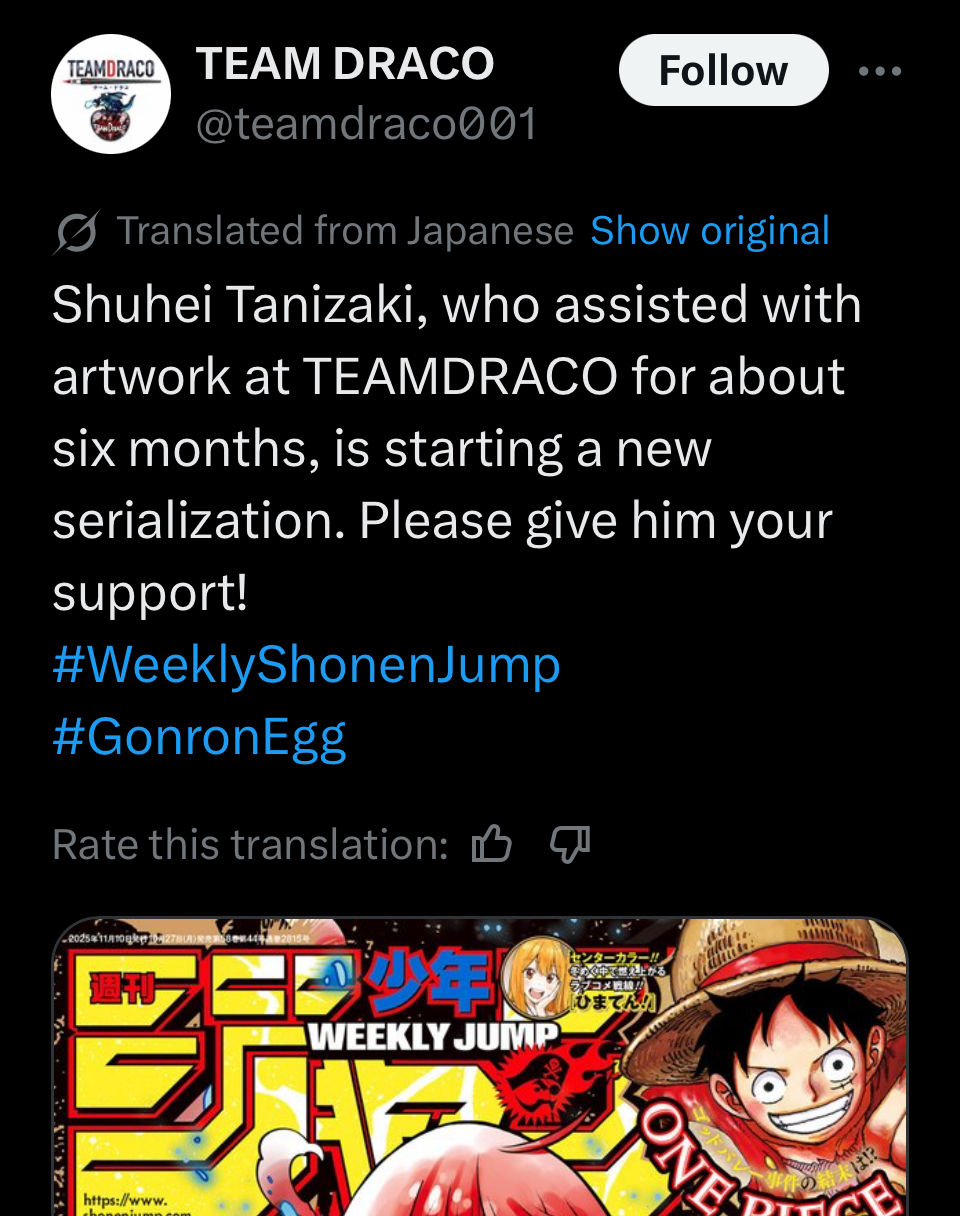 nips like the first ch. Say it feels like togashi's work.https://x.com/search?q=%E3%82%B4%E3%83%B3%E3%83%AD%E3%83%B3%E3%83%BB%E3%82%A8%E3%83%83%E3%82%B0&src=typed_query&f=live