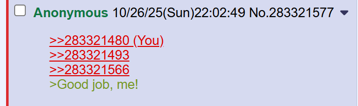 >>283321480>>283321493>>283321566>Good job, me!