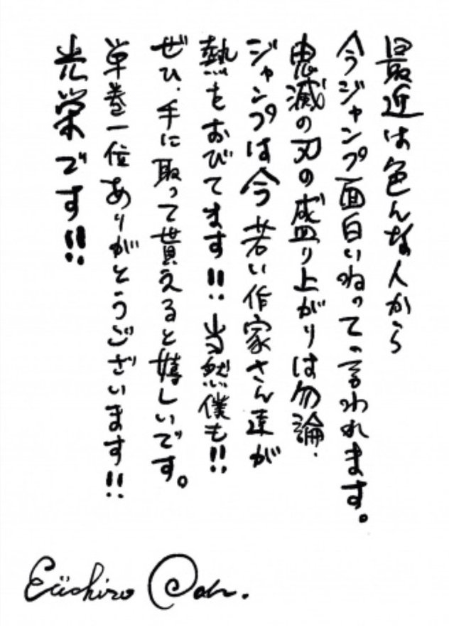 >>283334638Oda sent his yakuzas when Kimetsu raped his shitty Wano arc >Recently, lots of people say that Jump is getting more interesting. Jump right now is growing thanks to Kimetsu no Yaiba's power but also all the young authors in it! That includes me too!! I'd be glad if you checked Jump. Thank you for making me reach 1st place, I'm honored!'