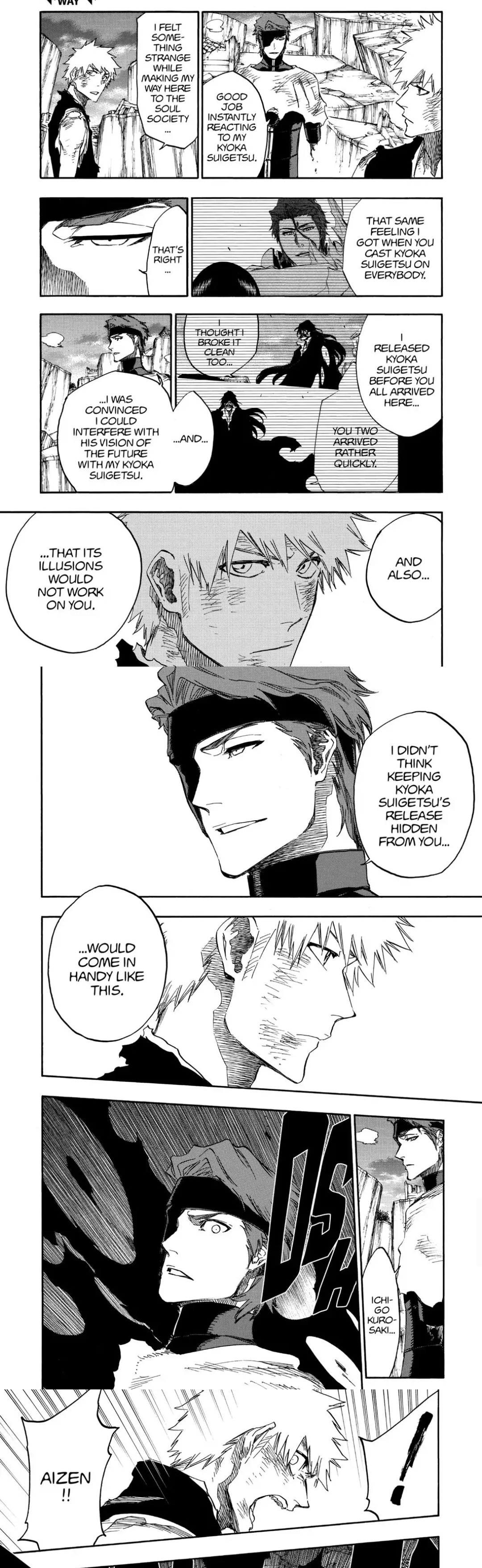 >>283349704Yeah Aizen should have tried kyoka suigetsu when desperate, and have Ichigo still perfectly react to everything because his body's senses are so keen they can't be fooled or something.