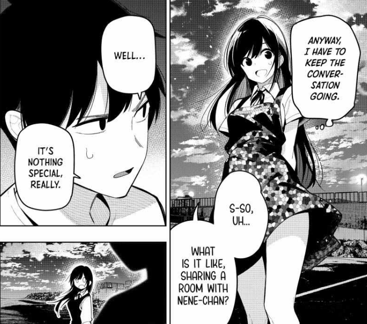 oh no, it was asahi going for the kill completely out of the blue, meanwhile mona and tomo are unaware.