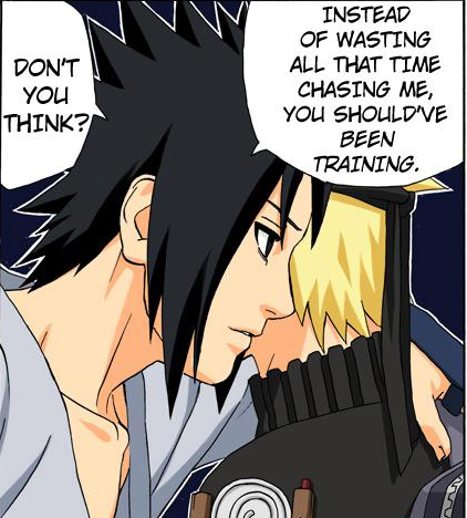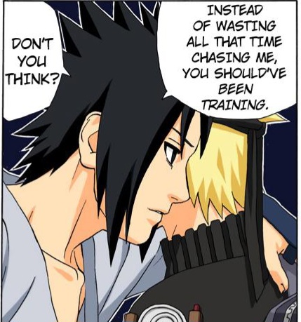 >>283369493Genuinely, what is this pose supposed to represent? Sasuke is clearly not supposed to give a shit at all about Naruto at this part of the story, so why would he get so close and intimate with him? Is it just for homoeroticism?