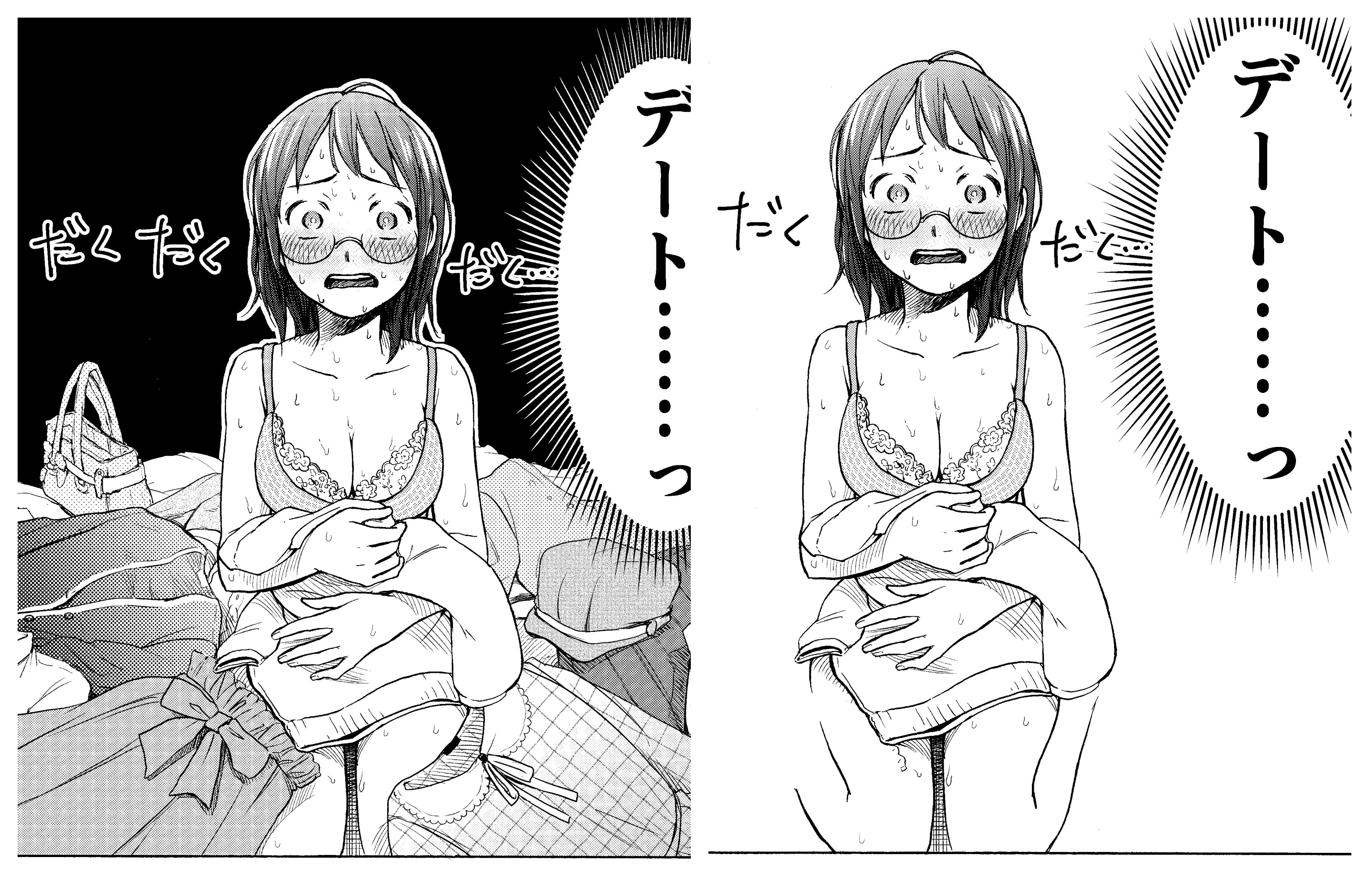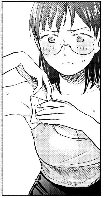 The highlight of Cahpter 23 is the scene where Asako shyly shows him her outfit after trying it on.If a single panel has a blush, cleavage, and armpit all together, I’m usually satisfied—but this time, the fitting room setting itself was what mattered to me.Looking back, I wish I’d made it feel a little more closed-in and intimate.Also, I worked hard on drawing her bra and armpit while she’s taking care of her sweat, so please check that out too if you’d like.