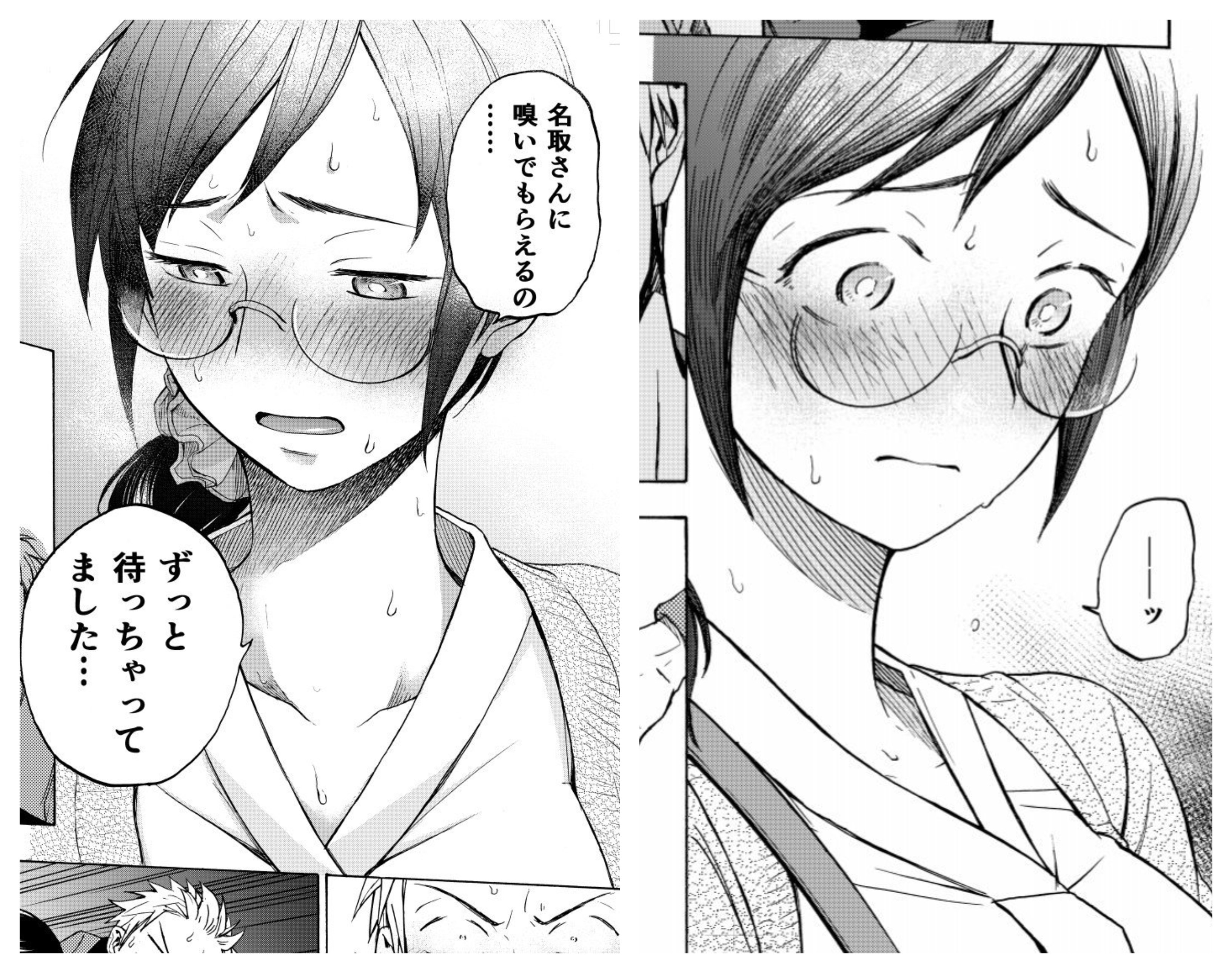 The highlight of Chapter 66 is healthy sweat! Sweating from being flustered or blushing is good too, but this time I wanted to have Asako-san actively sweat with a goal in mind! So I drew it that way. When I do that, the usual sniffing and "activities" aren't possible, so I had no choice but to fully concentrate and activate the erotic breathing technique on her sportswear outfit.