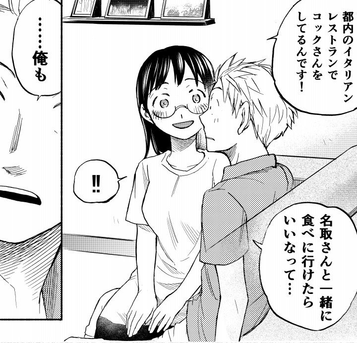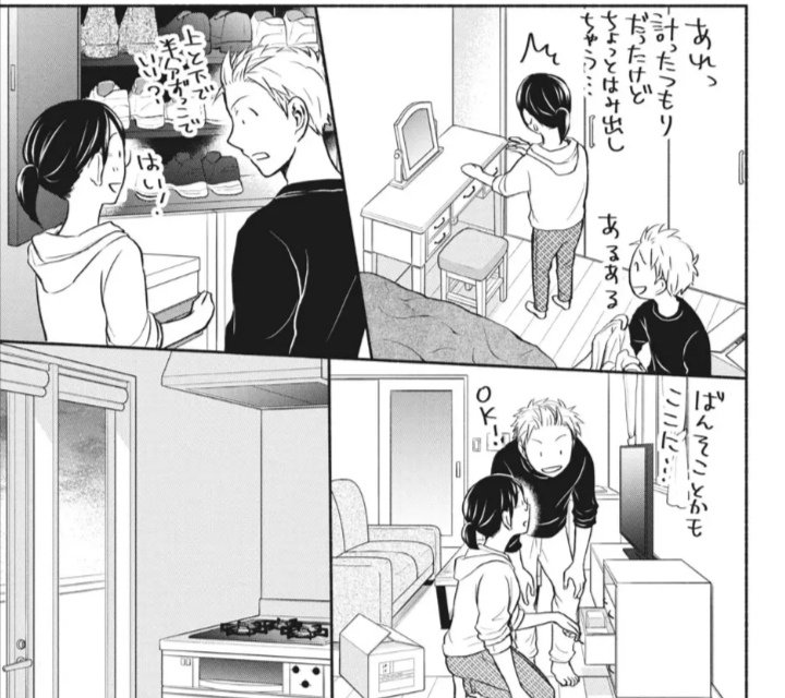 >I didn't think anyone would care, so I didn't post most of the highlights. Here are a couple more.The highlight of Chapter 49 is "The kind of life where you want to feel happiness while getting moderately tired from assembling furniture and thinking about object placement together with your lover..." Furniture that's too heavy for one person to lift and drags on the floor can be carried by two people... everything finishes quickly when two people do it... I've become the type to be moved by such things...Before serialization, I thought the appeal of romcom was things like going out on dates! Or unexpectedly being alone together and heart-pounding! Or blushing!!!! Boobs!! But there's an emotional appeal you notice as you draw... There are times you want gentle noodle soup instead of rich ramen... That was the state of mind for this chapter.But after eating noodle soup and being healed, you eventually want rich ramen after all, so I want to recharge properly during the break and go with hearty ramen for the cohabitation arc!!!