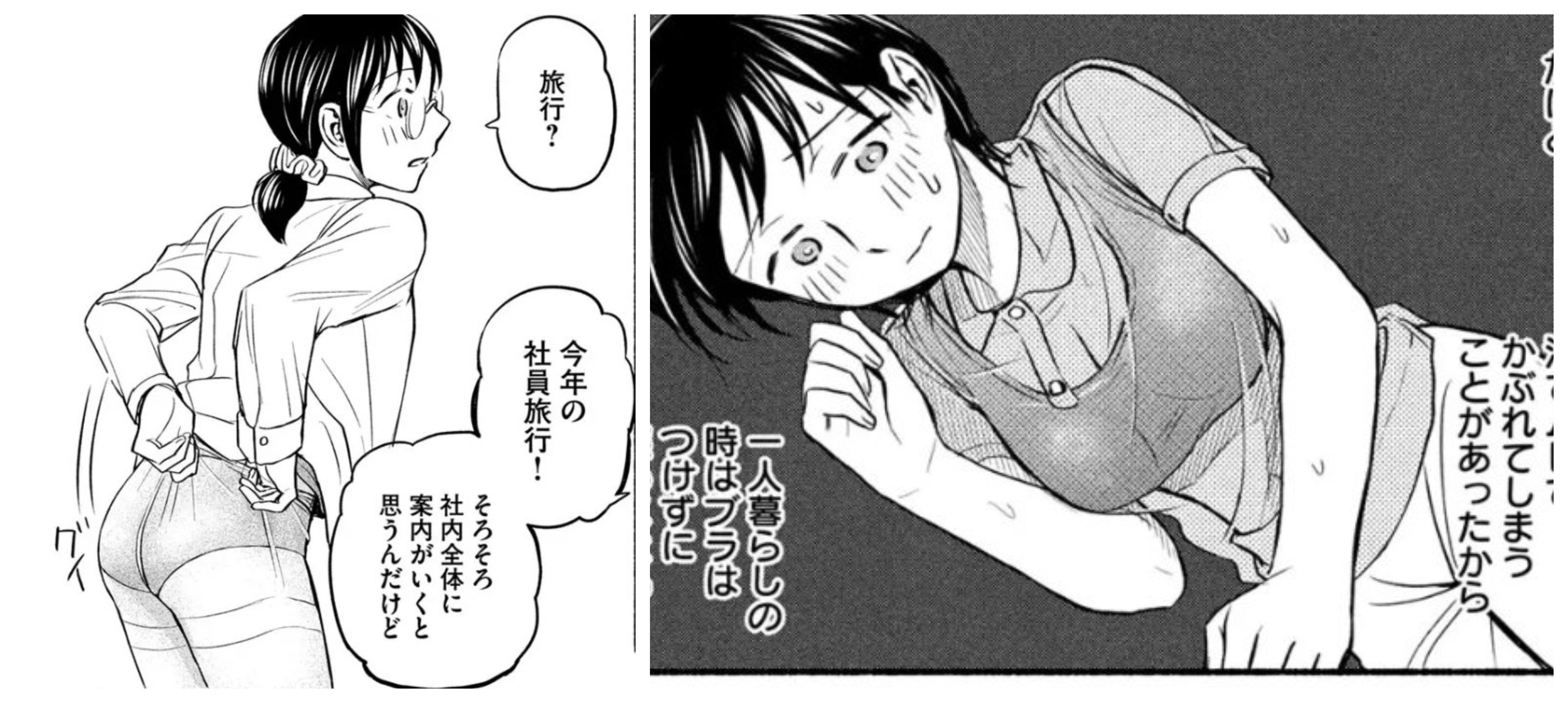 The highlight of Episode 65 is the part where she tugs at her stockings and her inner conflict about going braless! I debated whether to make Asako-san's underwear the kind with a fair amount of lace, but when I draw lace it suddenly gives off a lavish atmosphere and somehow didn't feel right, so I ultimately settled on the plainest-looking seamless underwear...The plainer it is, the more I go "Umu... (satisfied)," so I think I've burdened myself with a troublesome karma. Also, this time because of the "Did I gain weight...!?" flow, while this panel is fanservice, I was conscious of making her butt look slightly defeated by gravity. A little sloppiness is good...And whether or not to sleep braless. This is a very important factor. It's been just about a month and a half since they started living together, and while things have settled down, Asako still can't sleep braless when sleeping with Natori. Even though when she lived alone, braless was fine.How much should she expose herself in front of her boyfriend... It's fine in that kind of atmosphere, but Asako still can't quite gauge the distance and balance when it's not that kind of moment, hence the maiden's inner conflict... It's not like the author desperately wants to draw a moment of braless cuddling or anything. It's not! What's with that look in your eyes!