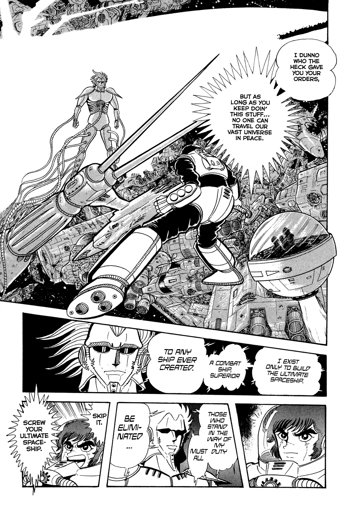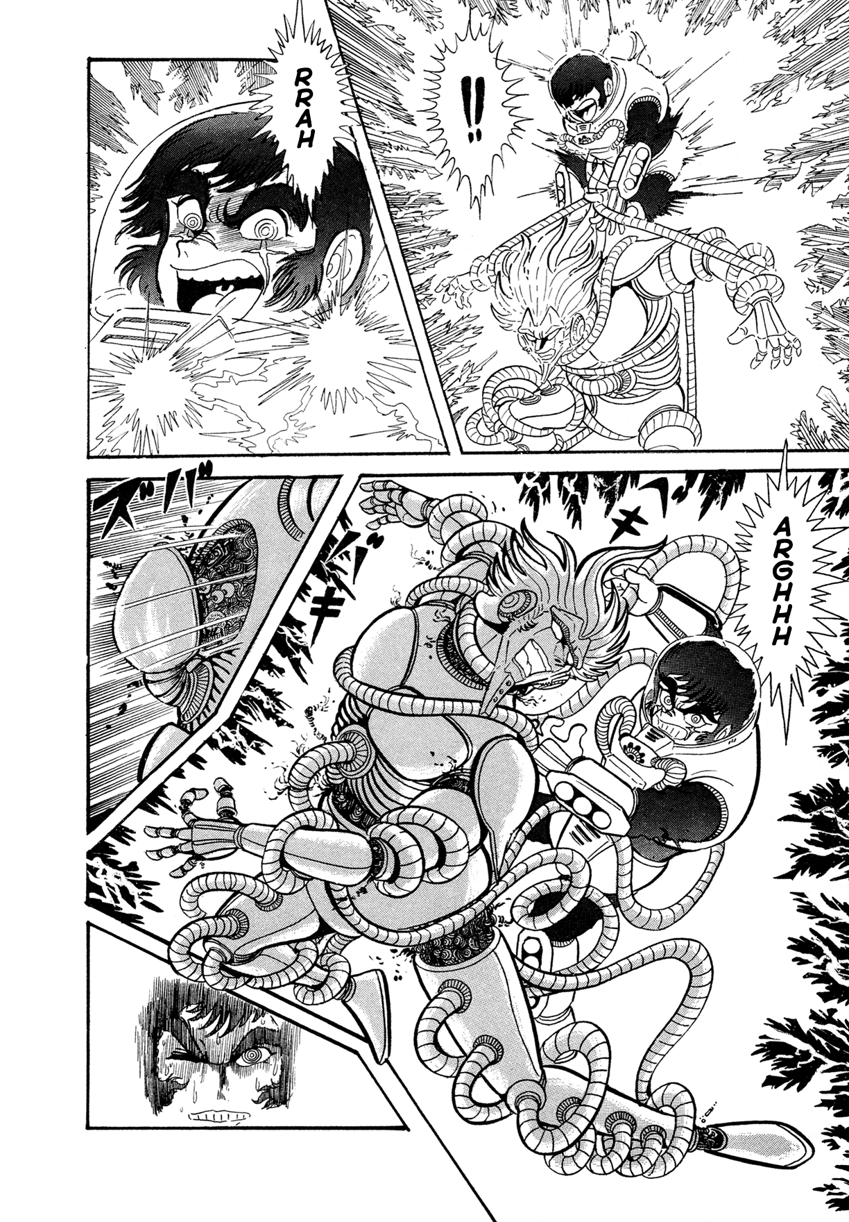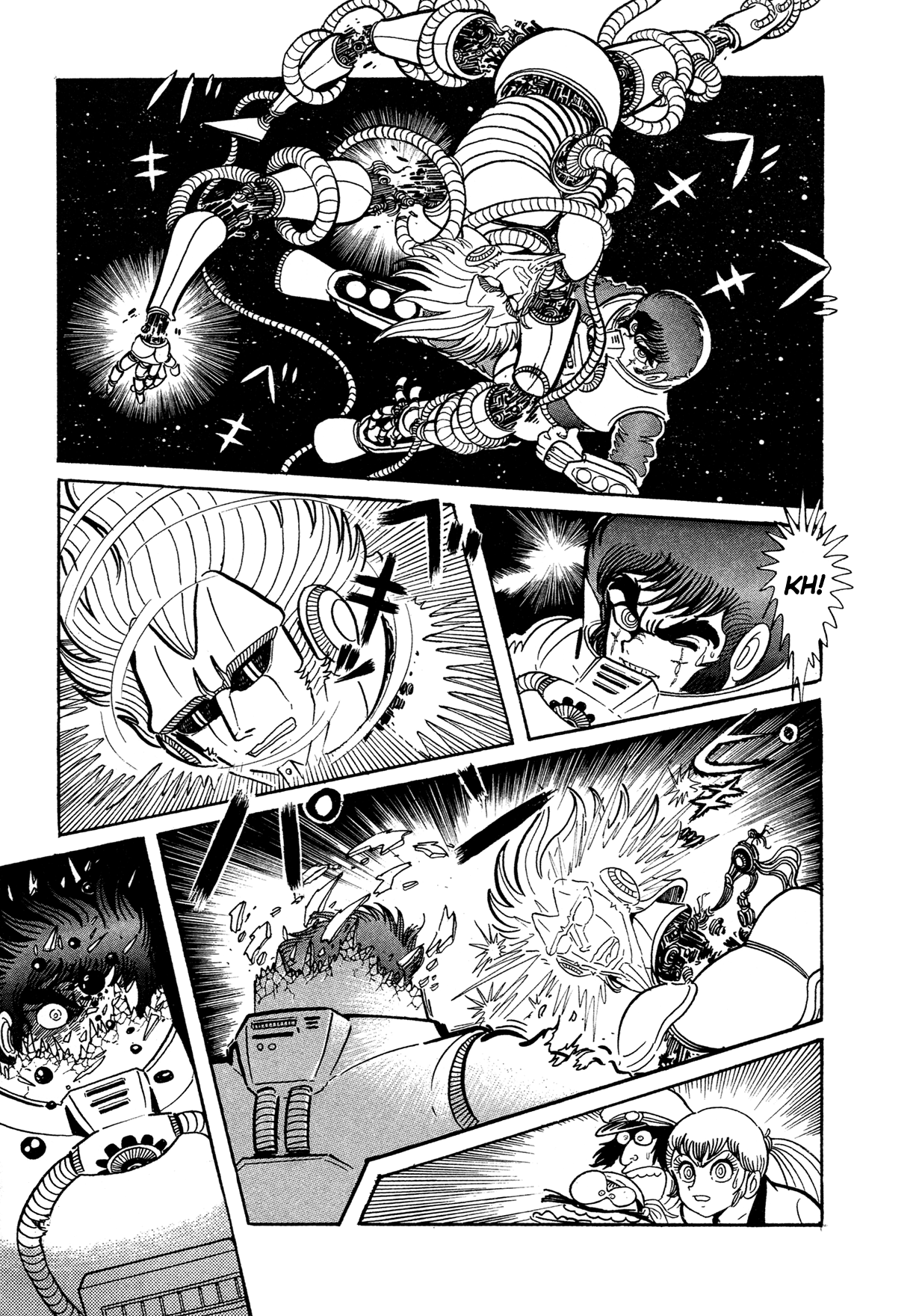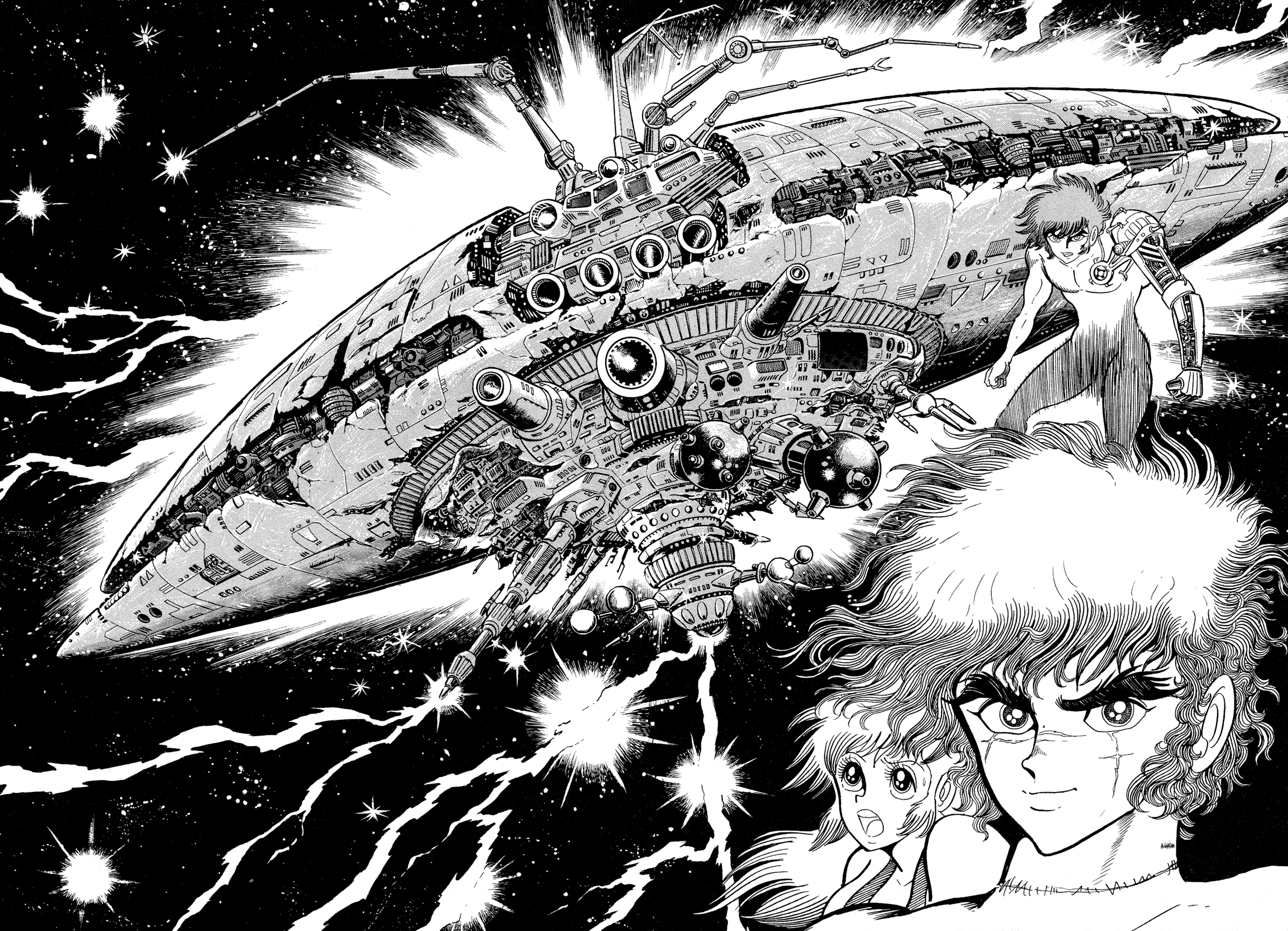 ok I was mistaken before but I think I got it figured out nowthe buddhist WH40k bits aren't actually any of the named series or oneshots that make up the saga, they're chapters added later that tie together the various entries properly into one mythos, that's why they have the late 90s/00s Ishikawa artstyle, they're like the bonus chapters inserted into Getter and G in that regardwhile this cyborg frankenstein dude story is "The Tiger of 5000 Light Years", we've been reading just Miroku and some of the oneshots up til now