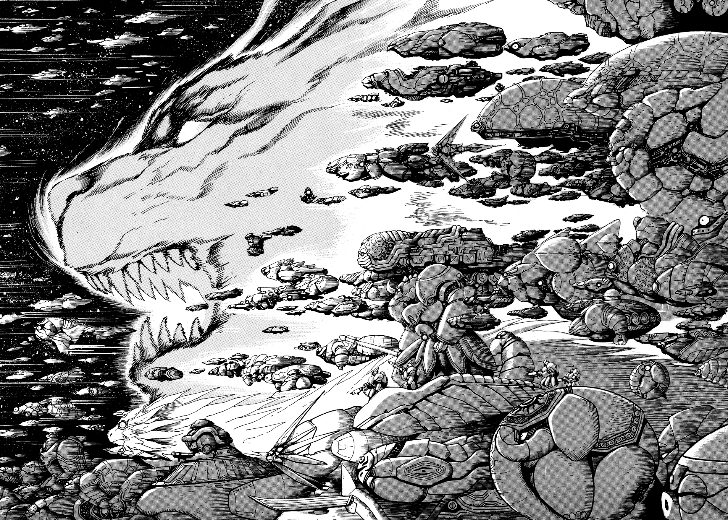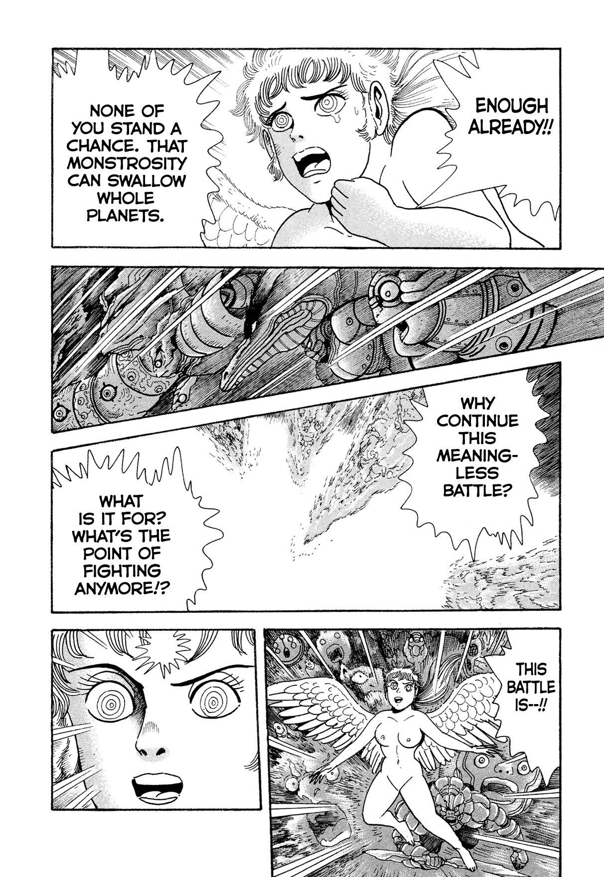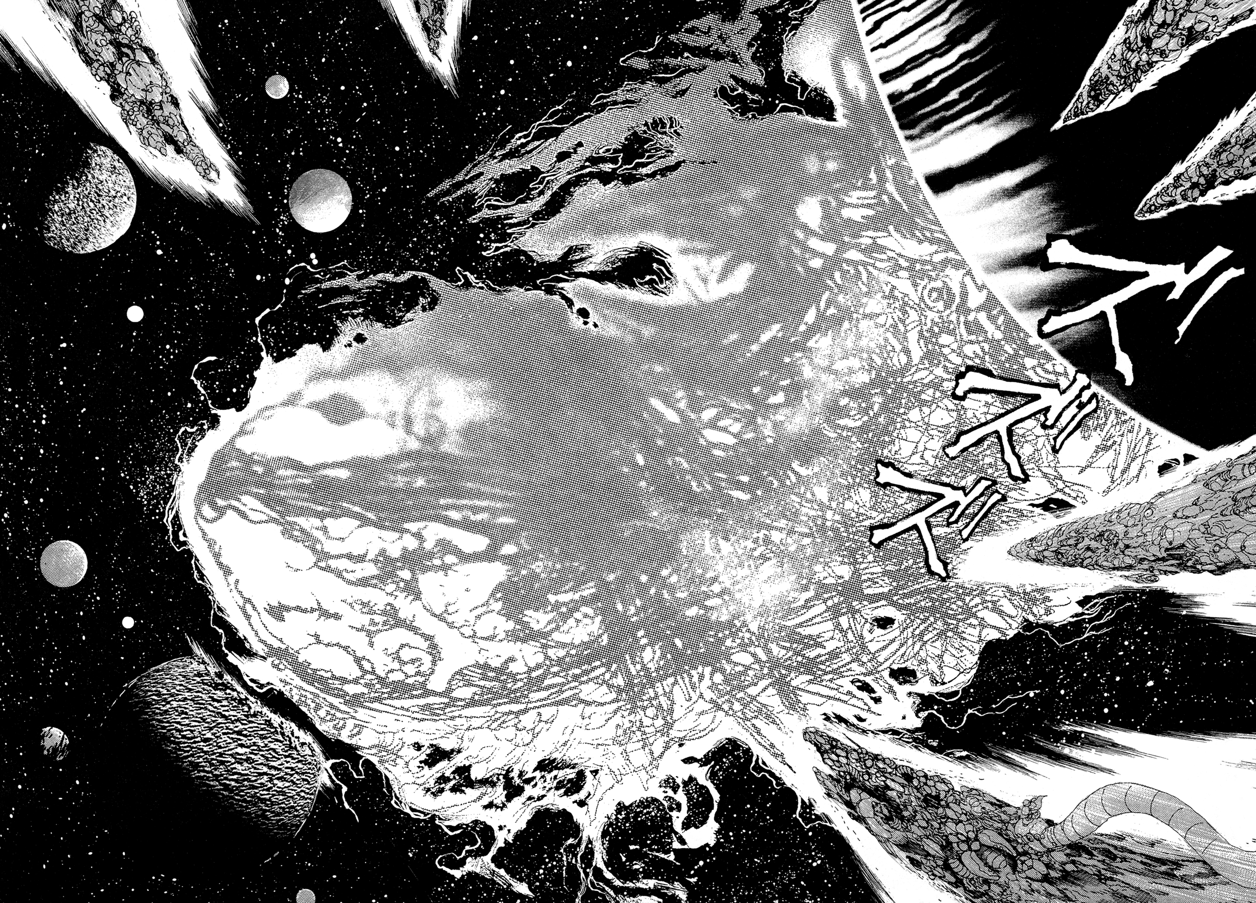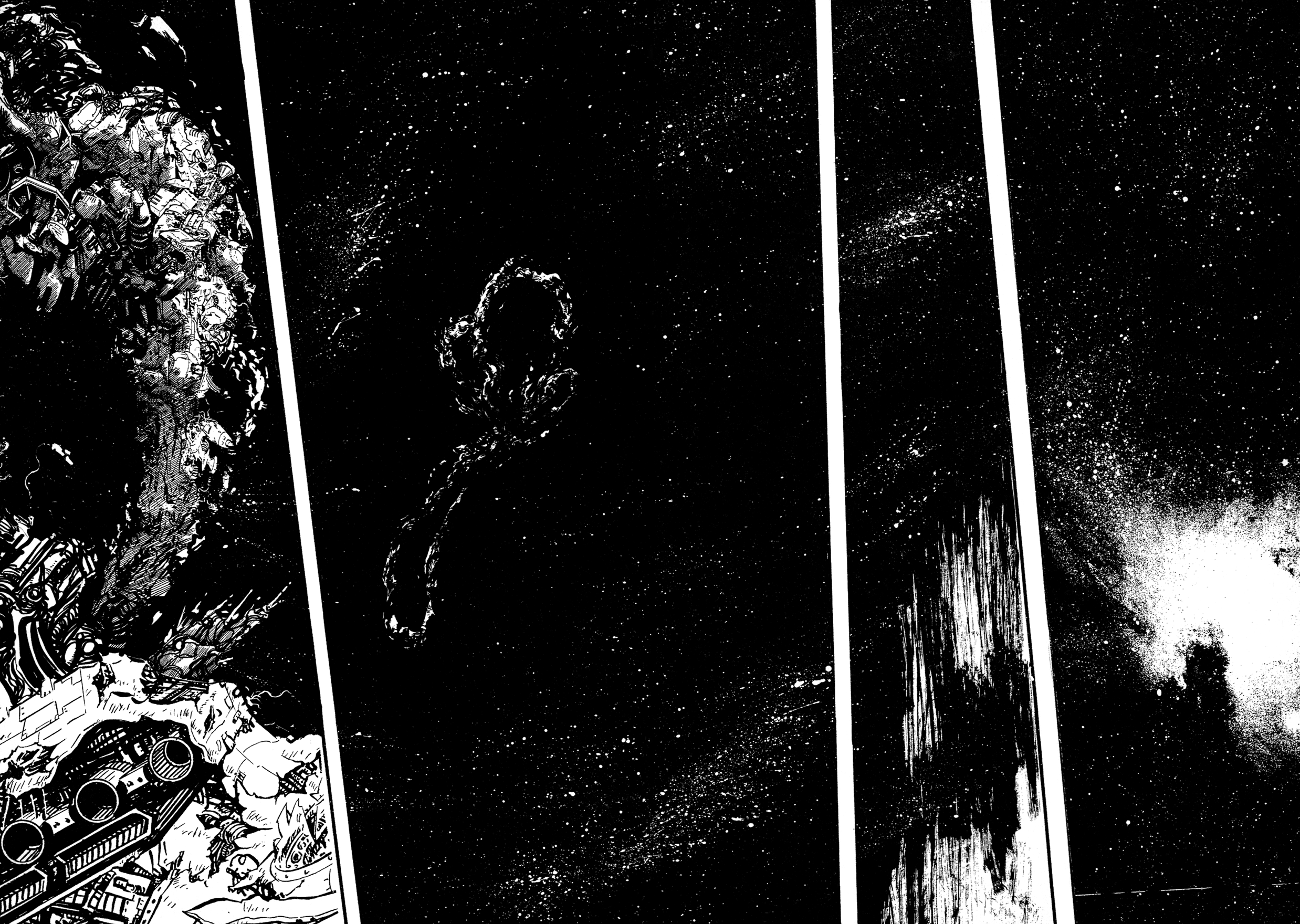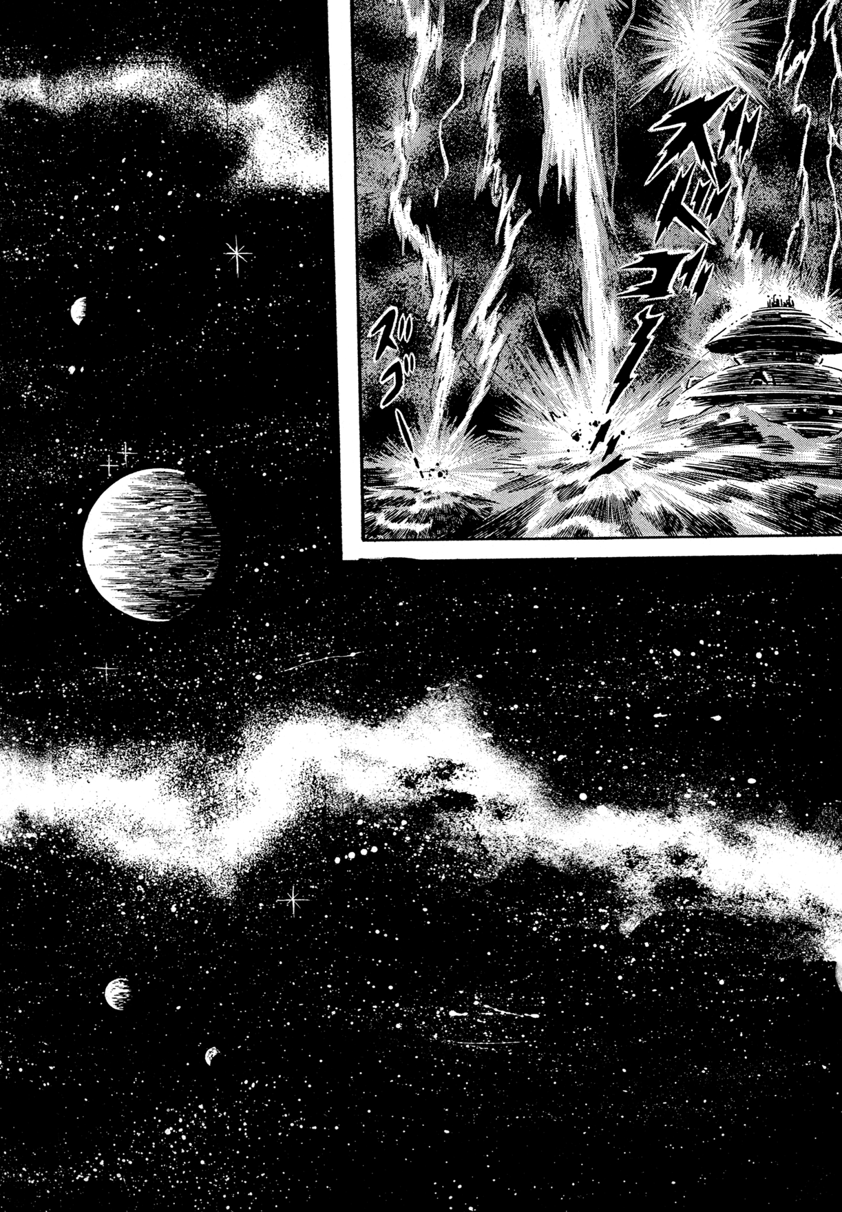 ok I was mistaken before but I think I got it figured out nowthe buddhist WH40k bits aren't actually any of the named series or oneshots that make up the saga, they're chapters added later that tie together the various entries properly into one mythos, that's why they have the late 90s/00s Ishikawa artstyle, they're like the bonus chapters inserted into Getter and G in that regardwhile this cyborg frankenstein dude story is "The Tiger of 5000 Light Years", we've been reading just Miroku and some of the oneshots up til now