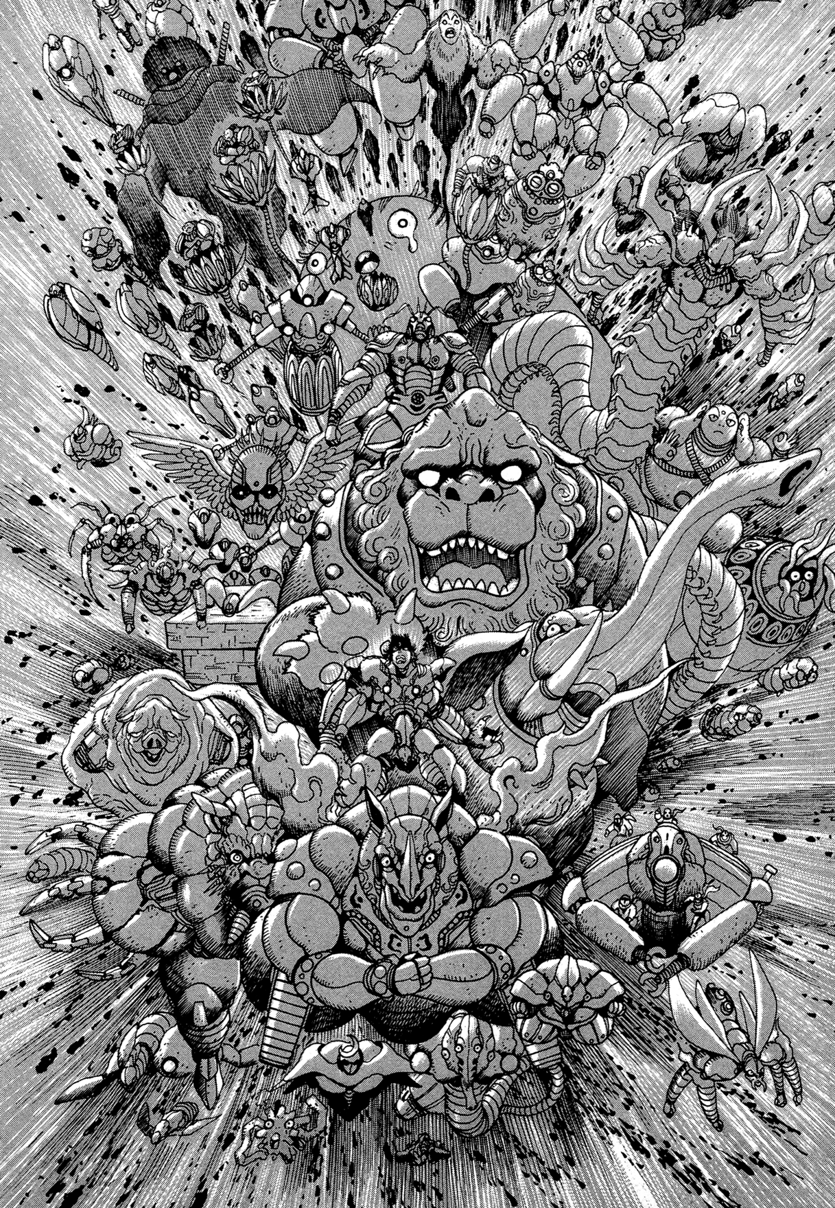 >>283388249The one bug(?) man on top of the central face reminds me of a Kamen Rider with that huge belt with the circular core.Also, I guess a lot of these ideas ended up applied to his later Getter stuff with the Emperor and the future sights.