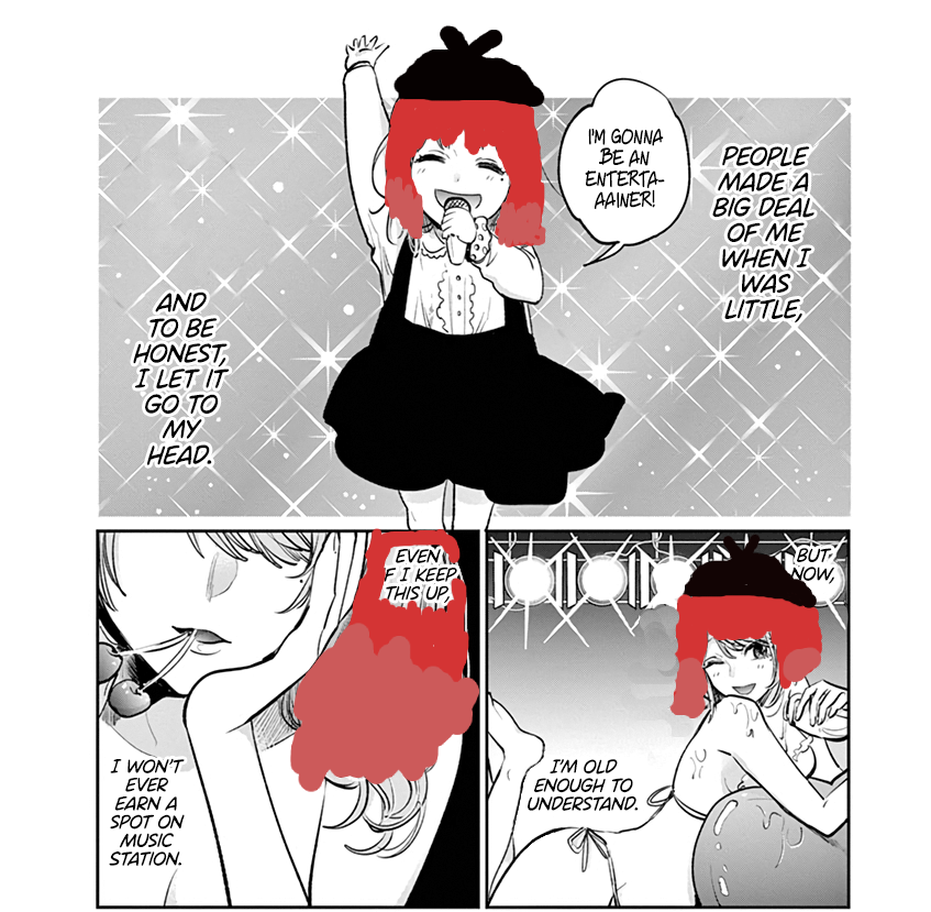 You guys know that scene where he's on top of her and she stops him by saying there's someone else she likes is supposed to be cute, endearing, and wholesome, right? Sleeping with directors is the default for actresses, basically a given, so the fact that she deviated from that is meant to be a testament to her high moral character and her love for aqua.