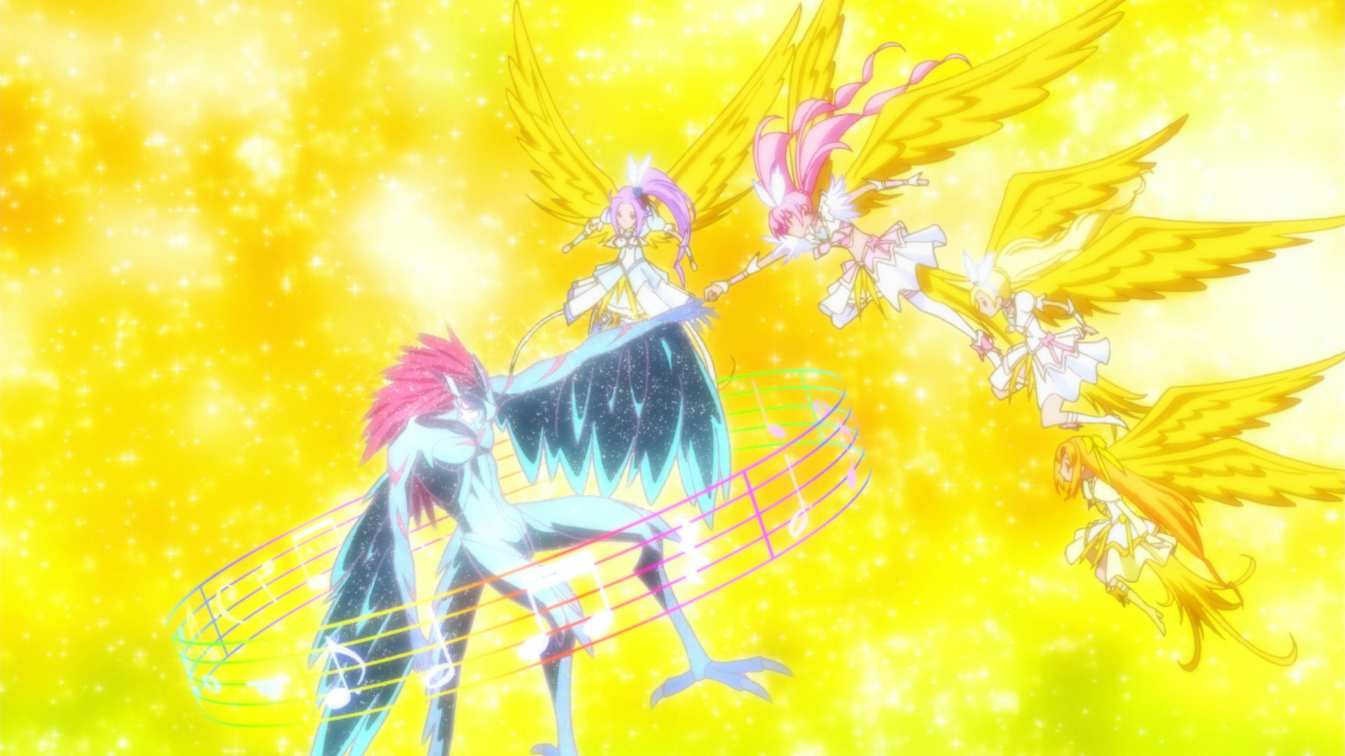 Since I’ve also just finished the three seasons as well, I thought I’d share my overall thoughts on them too.SuiteVery consistent throughout its run, although the misunderstandings in the first cour to have Hibiki and Kanade bicker with each other did start to get a little silly, so I was glad when that part eventually got resolved and the show stopped relying on it.I felt it really hit its stride once Ellen joined the protagonists as she became much more enjoyable than when she was the main general (I’m not a huge fan of mind control as a plot point and her interactions with Hummy during this time were a bit repetitive.)Ako’s addition to the group was solid, although I wish she joined sooner so she could have more time to bounce off the rest of the cast outside of her earlier cameos in episodes to be snarky. It would’ve been better if she actually spoke when disguised rather than have Dodori say everything for her. I don’t think it would have required much reworking to have her join earlier even with being tied to Mephisto’s purification, as she could have just talked to the others sooner and told them what was going on. Hummy was a standout and entertaining the whole time even though she could be a little too stupid at points (mostly early on), but she and the fairy tones could still provide good comic relief each episode. She felt the most involved in the plot as well compared Mofurun and the HC trio, which was nice. As a character, she is probably my favourite of the mascots.(1/2)