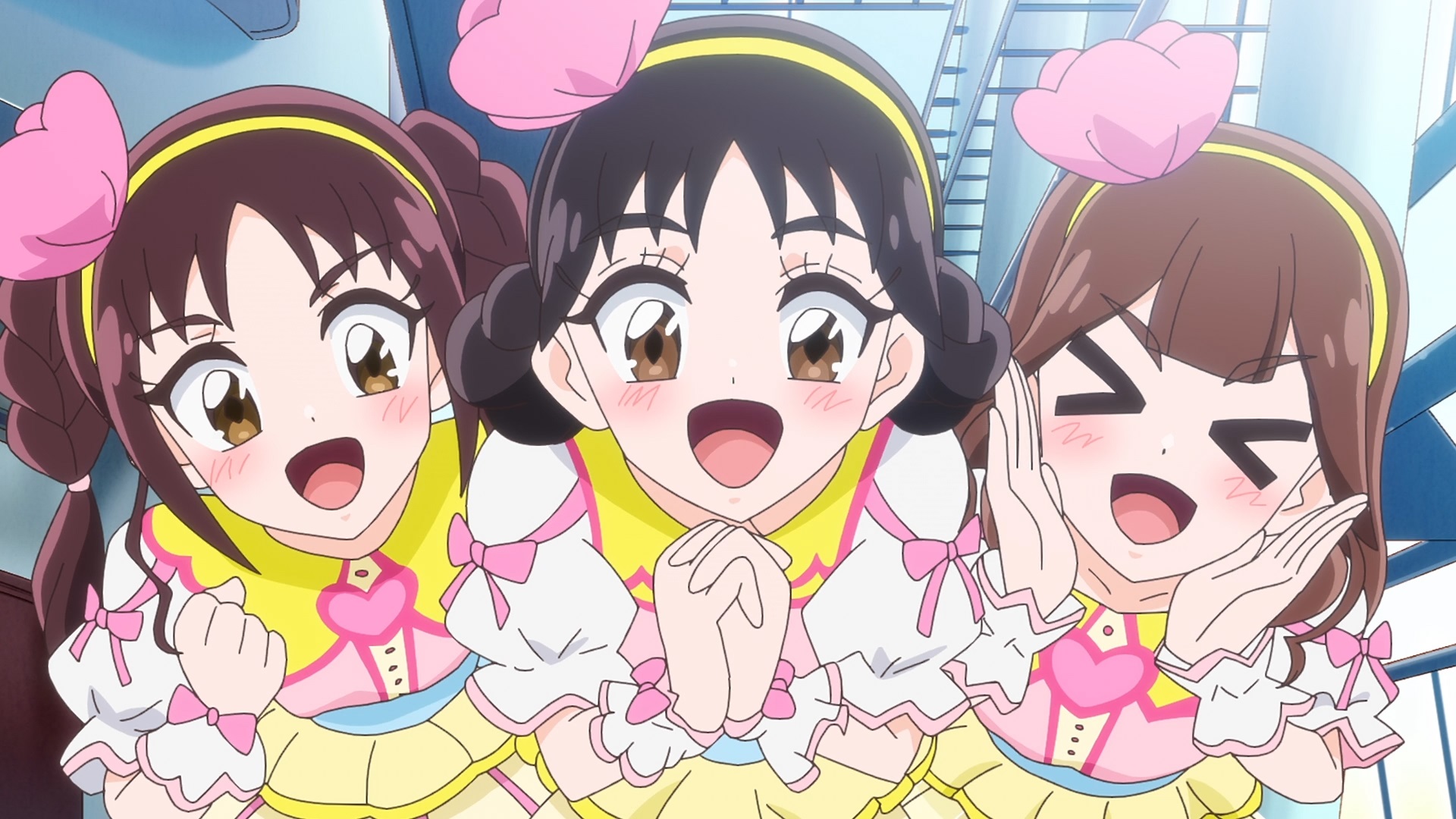 This was a fun callback to the opening visualsReminds me how tropical rouge did that with the Manatsu and Laura hand slapping thing