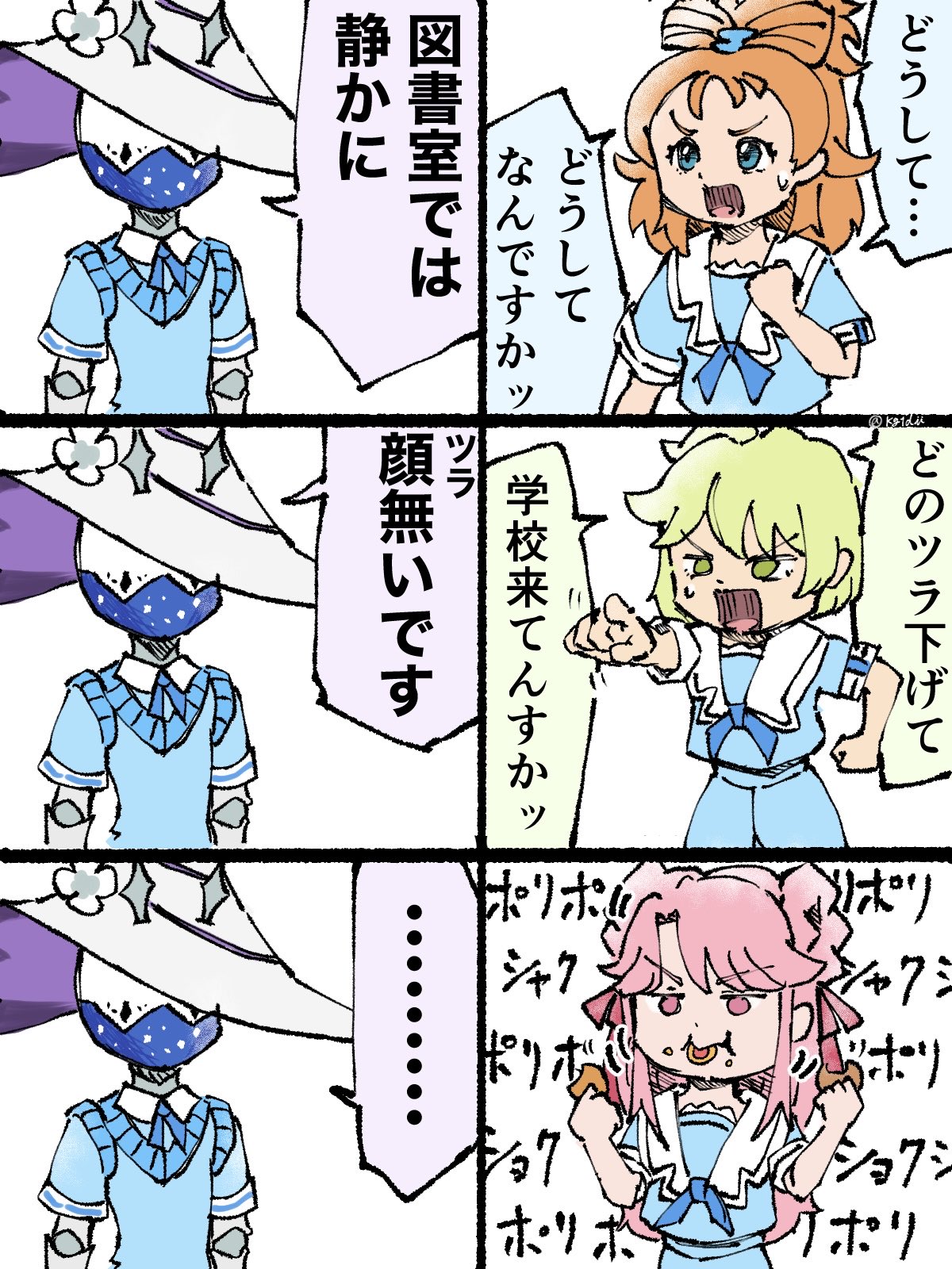 Sitting in the library staring at Sumire and talking is not suspicious at all.