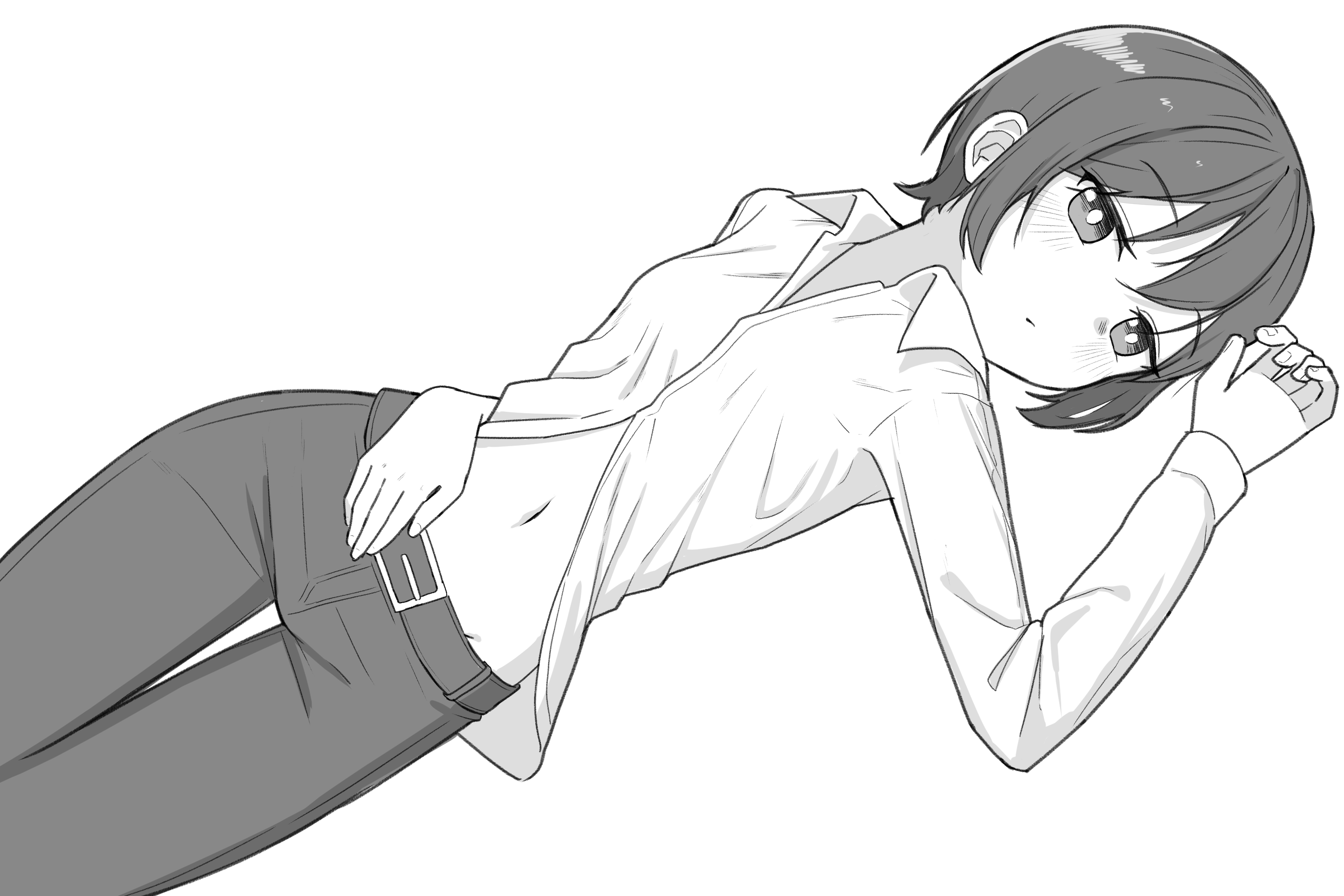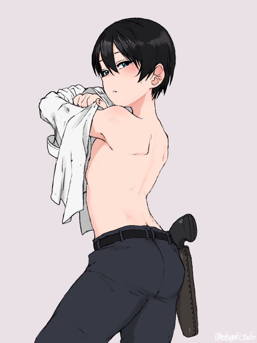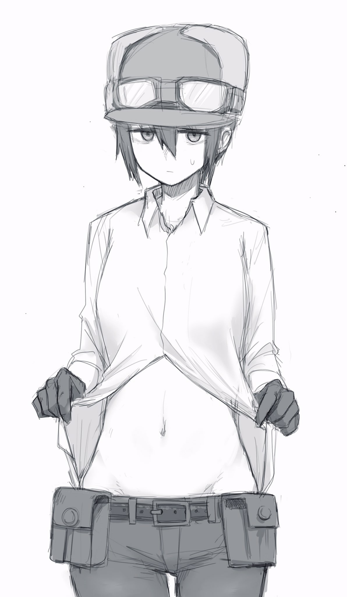 Looks like her- I mean his lower shirt buttons are missing, you're gonna find a tailor for him, right? You won't just leave his tummy exposed to the elements like that, right? And you most certainly wouldn't do anything untoward to this tummy either