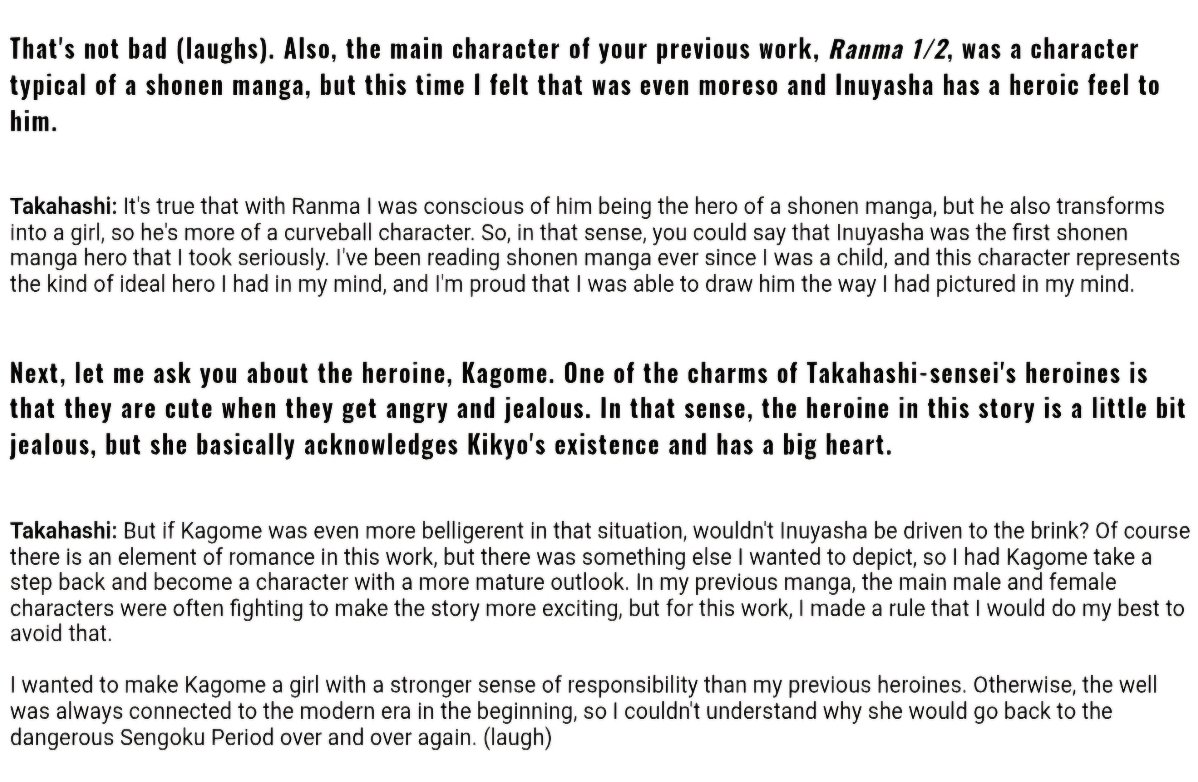 >>283474109>rumiko simp coping>i don't have the strenghtbecause you are simply wrong.He is right and here is the source you retard.https://www.furinkan.com/takahashi/takahashi13.html?accept reality and move on, she makes self inserts.