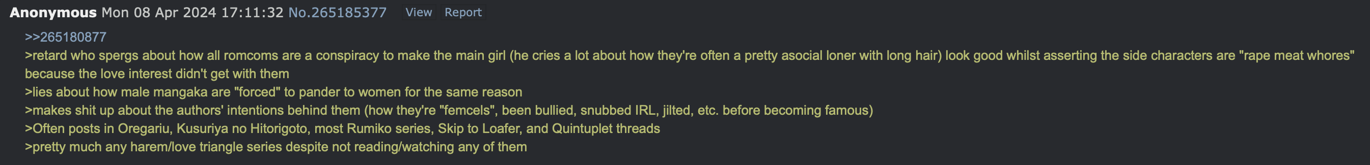 >>283501366It's sad how obvious it is that he leads a pathetic and bitter life and his only way to make himself feel better is to try to convince himself others are the same.